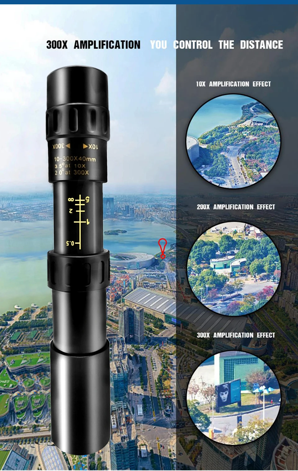 Мощный бинокль 10-300X40, профессиональный телескоп дальнего действия, HD военный монокуляр, Lll, ночное видение, охота, туризм, луна