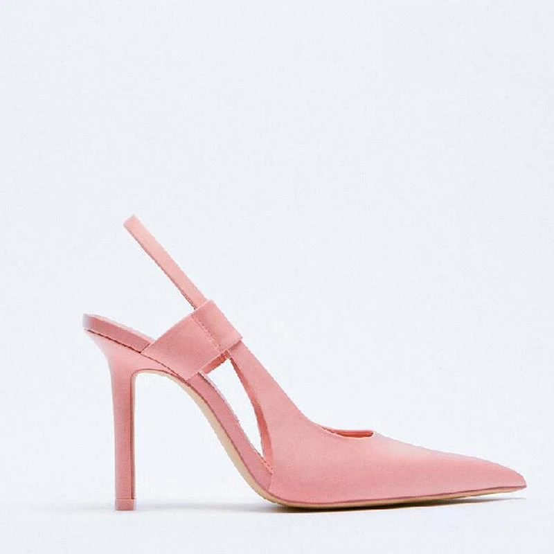 Женские вечерние туфли на высоком каблуке, розовые туфли-лодочки с острым носком, без застежки, с ремешком сзади, 2021