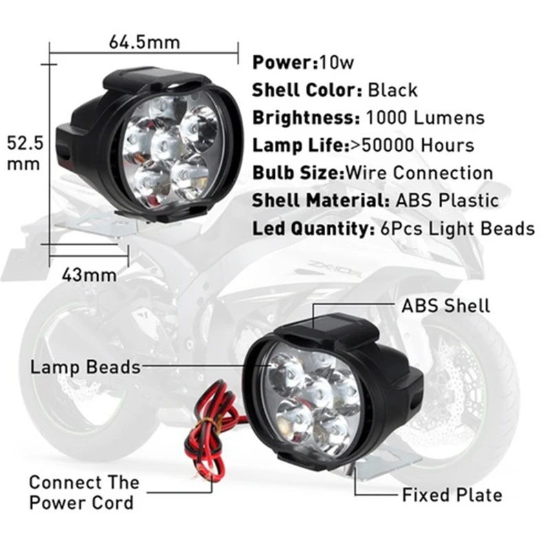 2/1 шт. светодиодный светильник на голову для мотоциклов, белый, супер яркий, 6 светодиодный, рабочий Точечный светильник для мотоцикла, противотуманная фара, 1500лм, Светодиодный точечный светильник для скутеровХарактеристики:Наименование: Светодиодный светильник для мотоциклаМощность: 10/15WНапряжение: 9-85 В постоянного токаLumenous: 1000LM/1500LMЦветовая температура: белый 6000KКоличество чипов: 6 шт.Срок службы: >50000 чСветильник расстояние: 100 мIP67 Номинальное уплотнение воды и пылиПодходит для мотоциклов, мотовездеходов, квадроциклов, мотовездеходов, скутеров.Посылка включает:2 шт. светодиодный светильник для мотоциклаИли светодиодный светильник для мотоцикла 1 шт.
