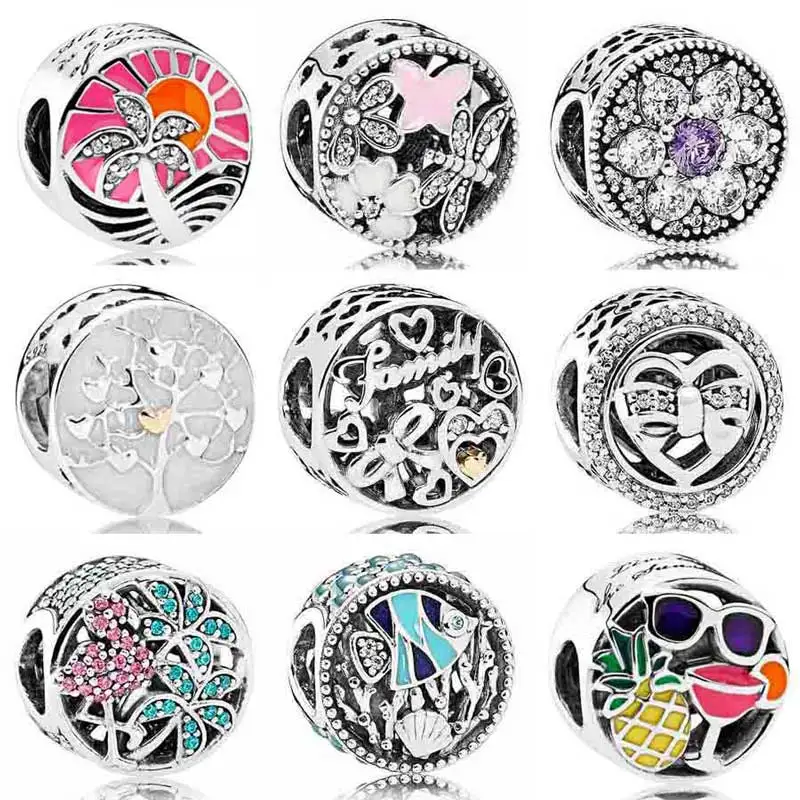 Летнее веселье забудьте о мне, не океанская жизнь, тропический фламинго, семейное дерево, бусина подходит для браслета Пандоры, искусственное серебряное очаровательное ювелирное изделие