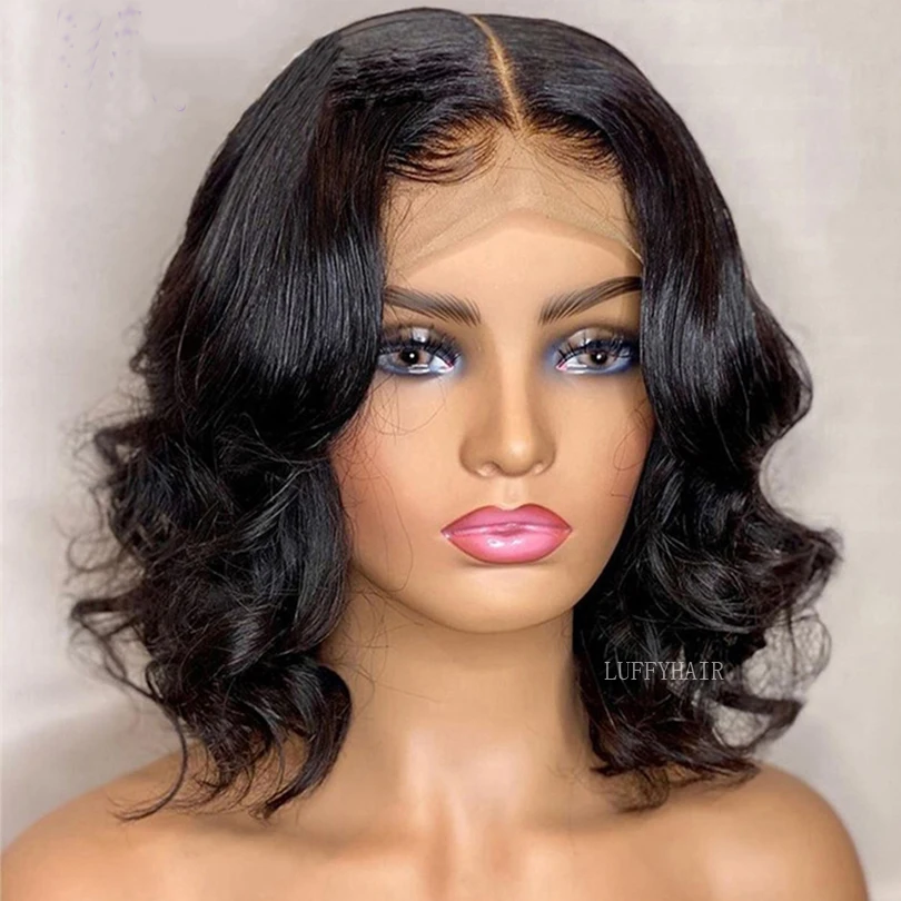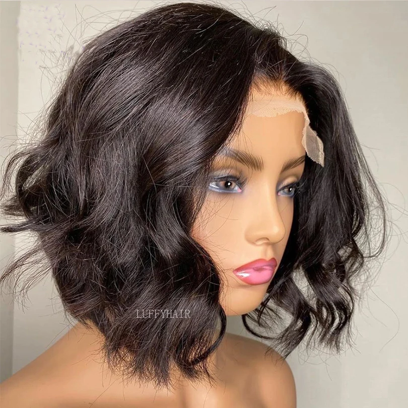 LUFFYHAIR, Короткие Волнистые шелковые парики на полной сетке из человеческих волос, предварительно выщипанные бразильские волосы Remy 5x4,5, Шелковый топ, парик на сетке для женщин