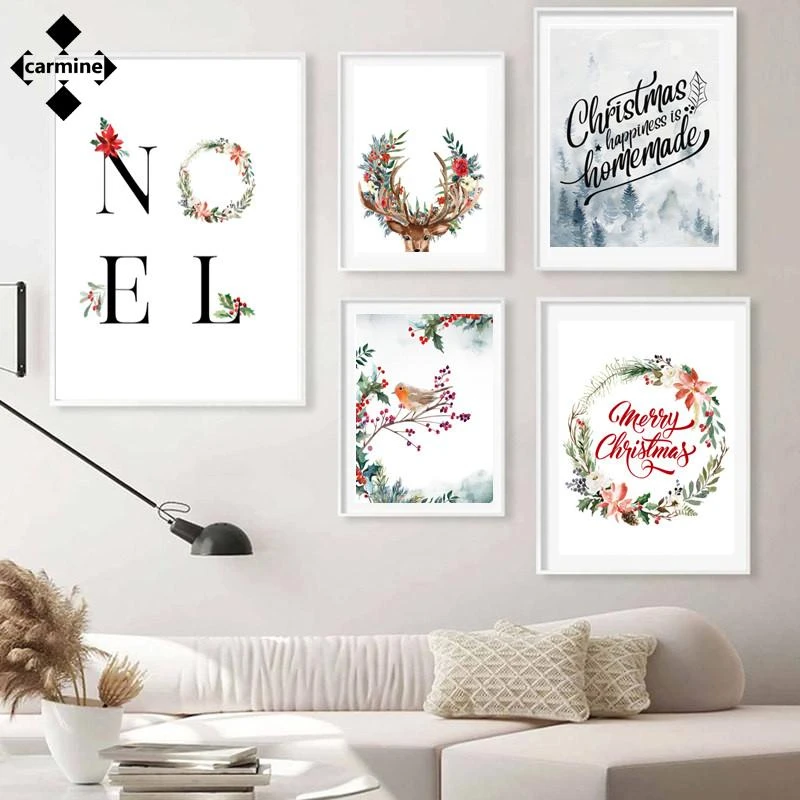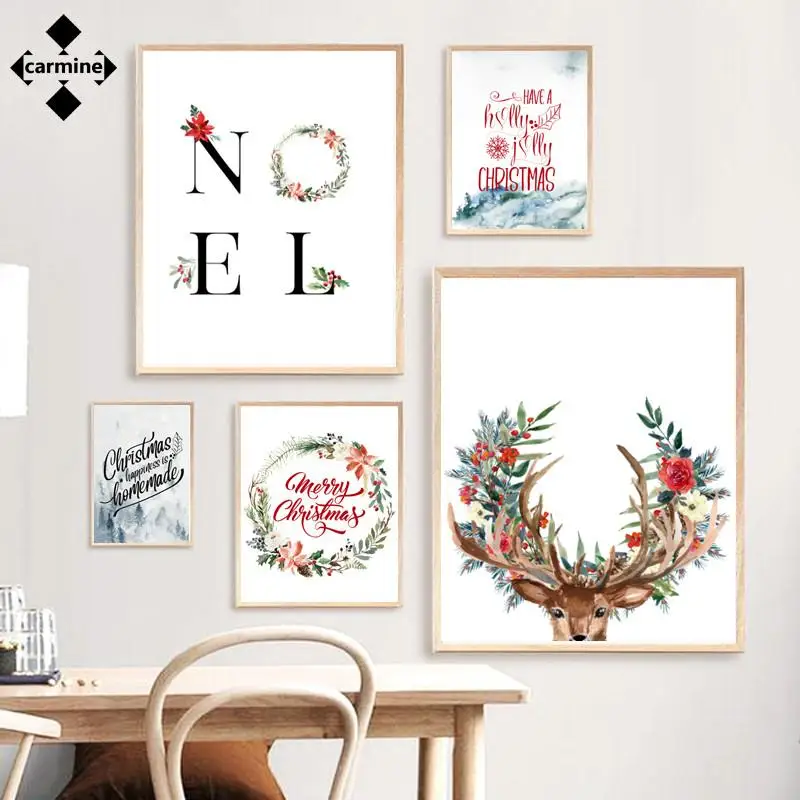 Рождественские цитаты, Картина на холсте, Скандинавская стена, искусственный венок оленя, картина, современный стиль, плакат для домашнего декора