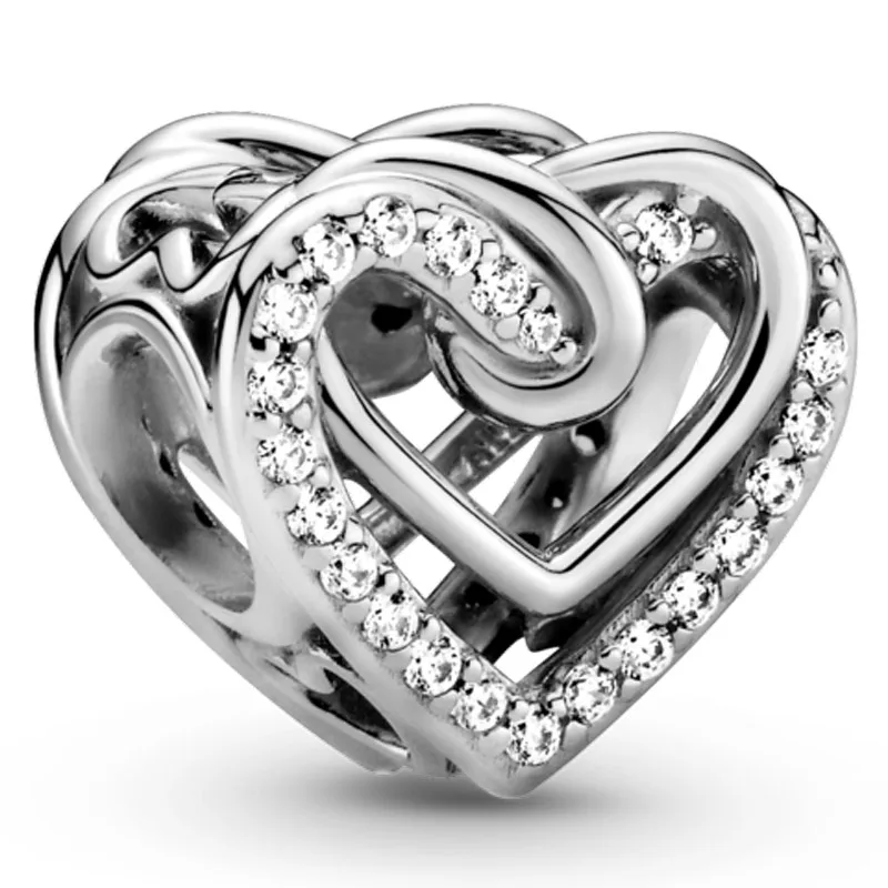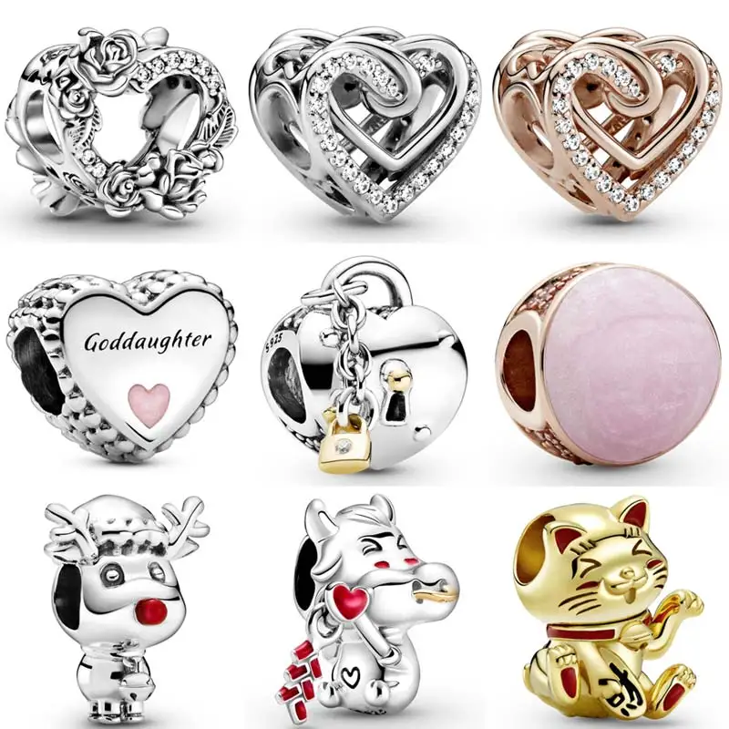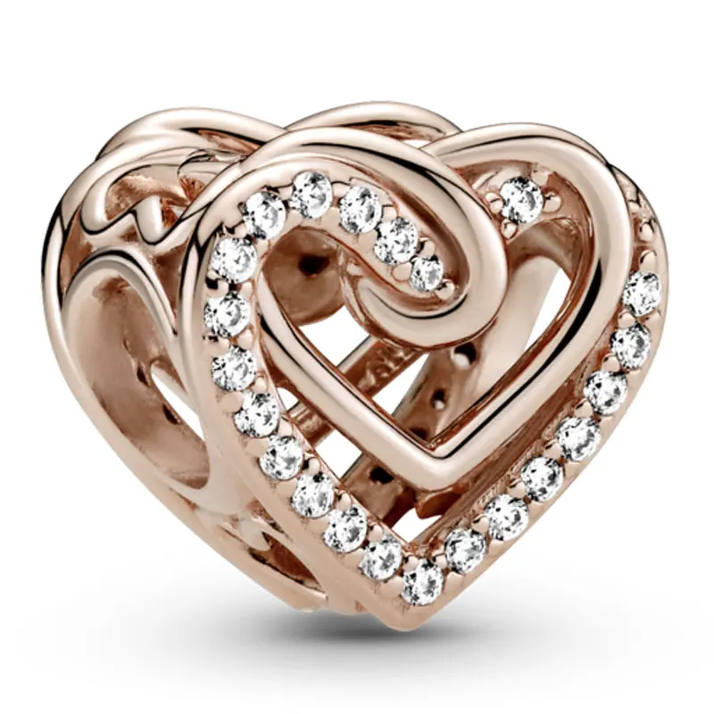 Бусина-Шарм крестная дочь розового цвета с открытым сердцем и розовыми цветами