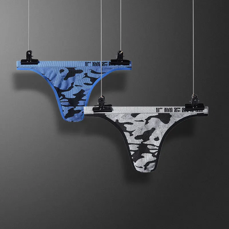 Трусы-танга мужские из вискозы, модное камуфляжное пикантное нижнее...