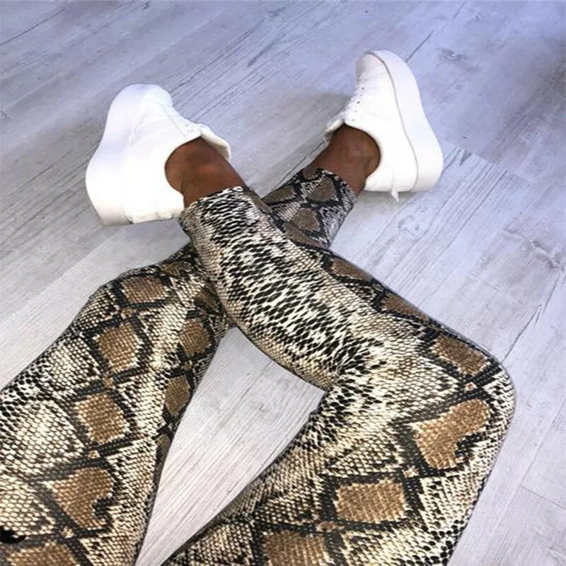 Модные женские Дамская змеиная с животным принтом мягкие эластичные повседневные леггинсы с высокой талией брюки