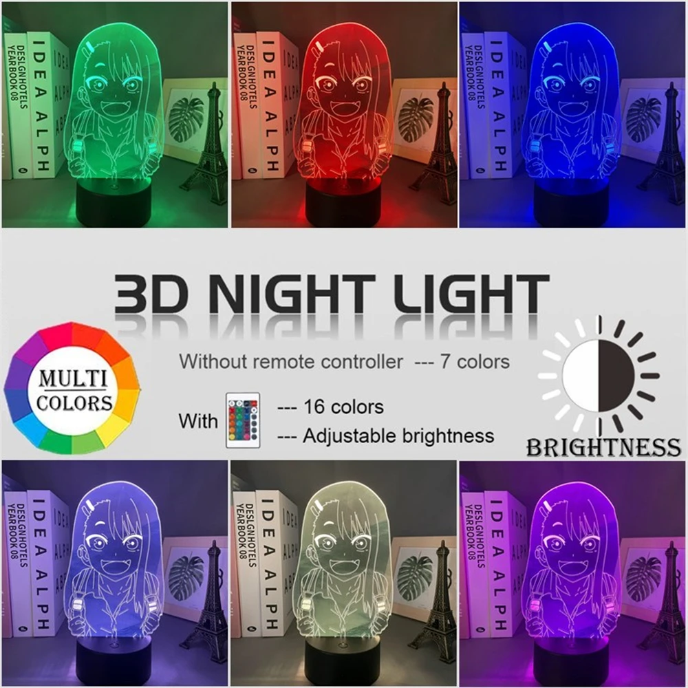 Манга 3d лампа не игрушка со мной Miss Nagatoro для декора комнаты RGB Меняющие цвет ночники подарок аниме светодиодные лампы Nagatoro