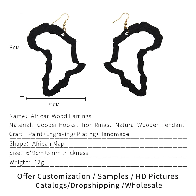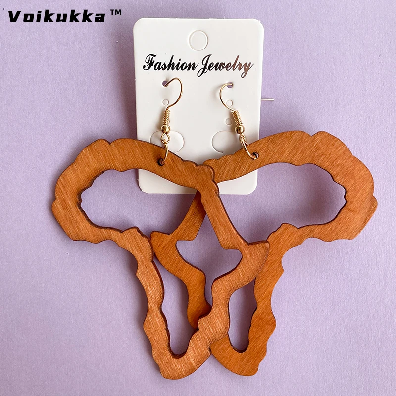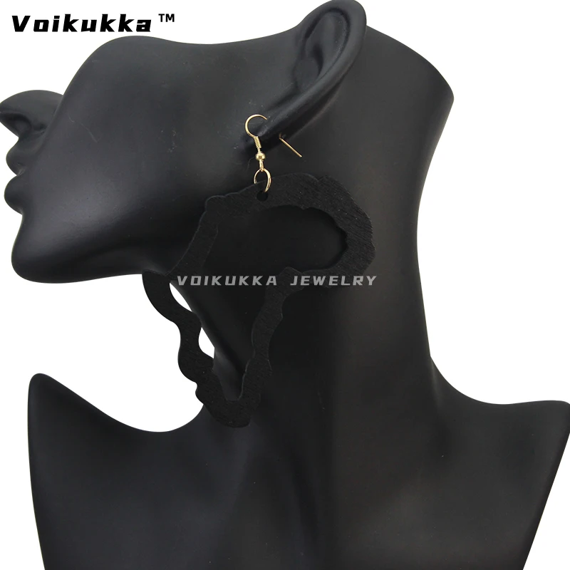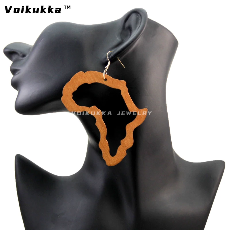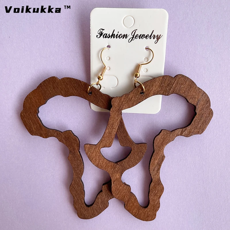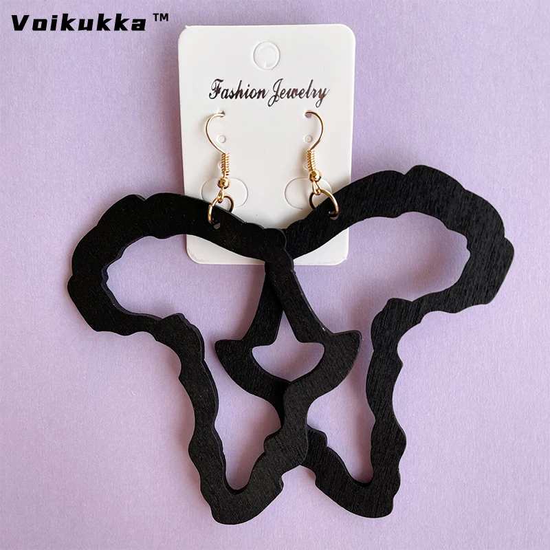 VOIKUKKA ювелирные изделия из натурального дерева лазерная резка Африканская Карта контур капли женщин Подвесные серьги для подарка аксессуары Оптовая продажа