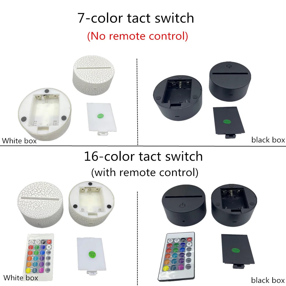 1 * Оптическая акриловая панель 1 * Основание лампы ABS (Черное Основание/основание трещины) 1 * пульт дистанционного управления (7 цветов в комплект не входят) 1 * кабель Micro USB, длина: 1 м 1 * Руководство пользователя