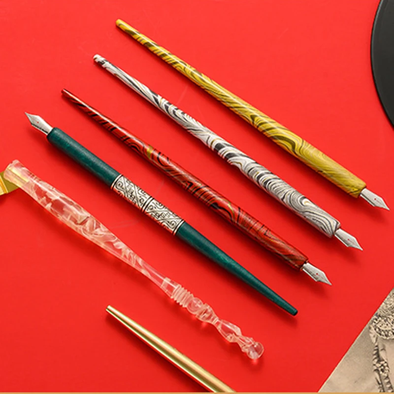 Ручка перьевая деревянная с 6 наконечниками и держателем для каллиграфии