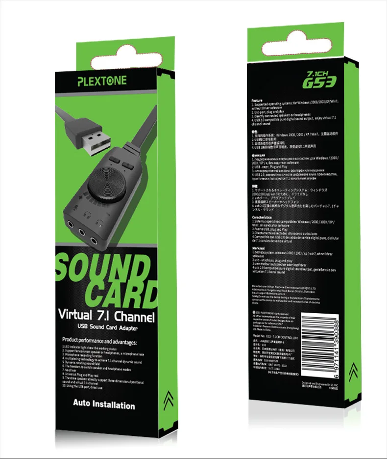 Виртуальная звуковая карта игры 7,1.1. Использование чипа SSS1629A5, который имеет новейший профессиональный эффект объемного звучания виртуального канала, GS3-это игровая звуковая карта, которая действительно поддерживает осуществление эффекта объемного звучания виртуального 7,1 канала.2. Бесплатная установка привода, подключи и работай.Нет настройки, один ключ запускает Режим канала 7,1, уменьшает ненужную громоздкую и сложную настройку программного обеспечения системы.3. Встроенный модуль усилителя для наушников поддерживает ручку звуковой карты для увеличения громкости наушников на 15 МВт.4. Он поддерживает Двухрежимная система наушников, 3,5 мм с одним разъемом (уровень 4) и 3,5 мм двойной вилкой (уровень 3), И понимает, удобный емкостный Мини-стилус, служащий также в токарная обработка обычные наушники в 7,1 внутриканальных наушников.5. Легко расширяет ваше стерео динамик или наушники до 7,1 канальной среде, предоставляя вам высокого качества звука удовольствия.6. Он совместим с несколькими системами: для Windows XP, для Windows Vista, для Windows 7/8/10, Linux, для OS X и других систем.7. Также подходит для звуковой карты компьютера/ноутбука/настольного компьютера, которая выгорает или теряет связь с материнской платой.