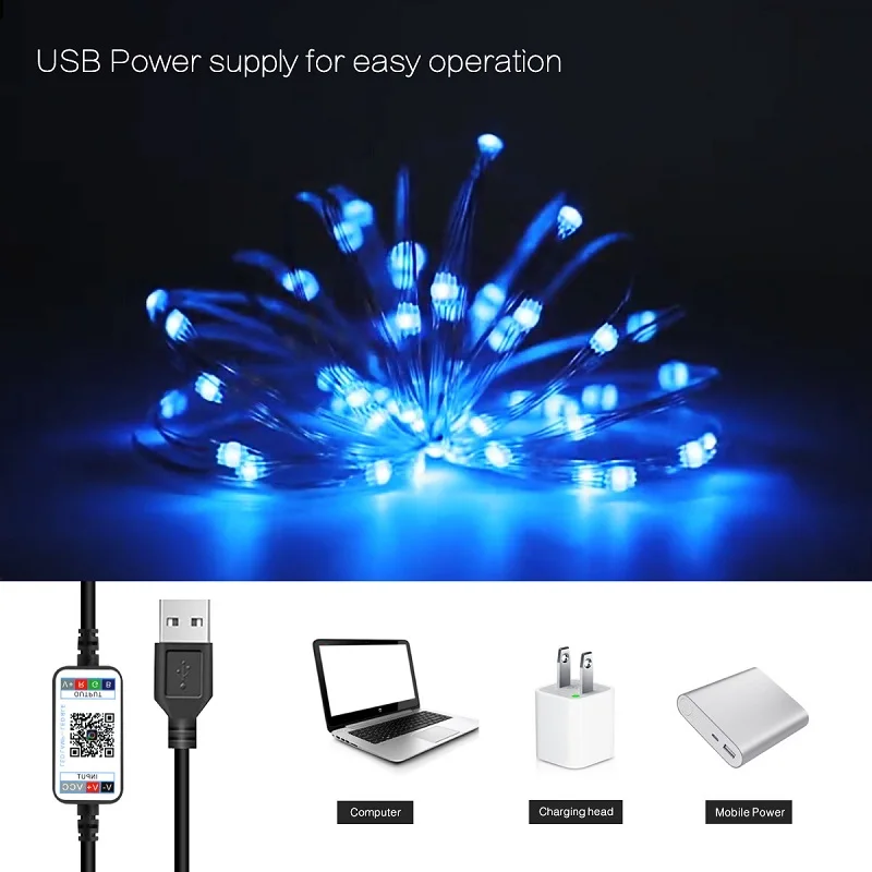 RGB светодиодный светильник USB Bluetooth для телефона, приложение для управления, гирлянда, водонепроницаемый фестиваль, новый год, день рождения, свадьба, украшение для дома