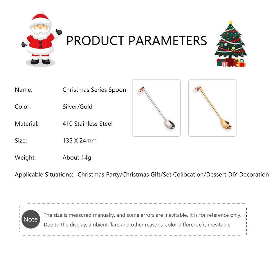 1. Каждой семье нужен Набор рождественских ложек. На прекрасном фестивале, это может дать вам немного более праздничный вкус. Семейное удовольствие.2. Он может быть сделан в Рождественский подарок для других, и это очень хороший праздничный подарок. Это очень хорошо для вашей семьи или для других.3. Есть два вида золота и серебра на выбор. Висячие украшения на них очень красивые, в том числе Рождественская елка, Санта-Клаус, Рождественская гирлянда, Рождественский олень и так далее.