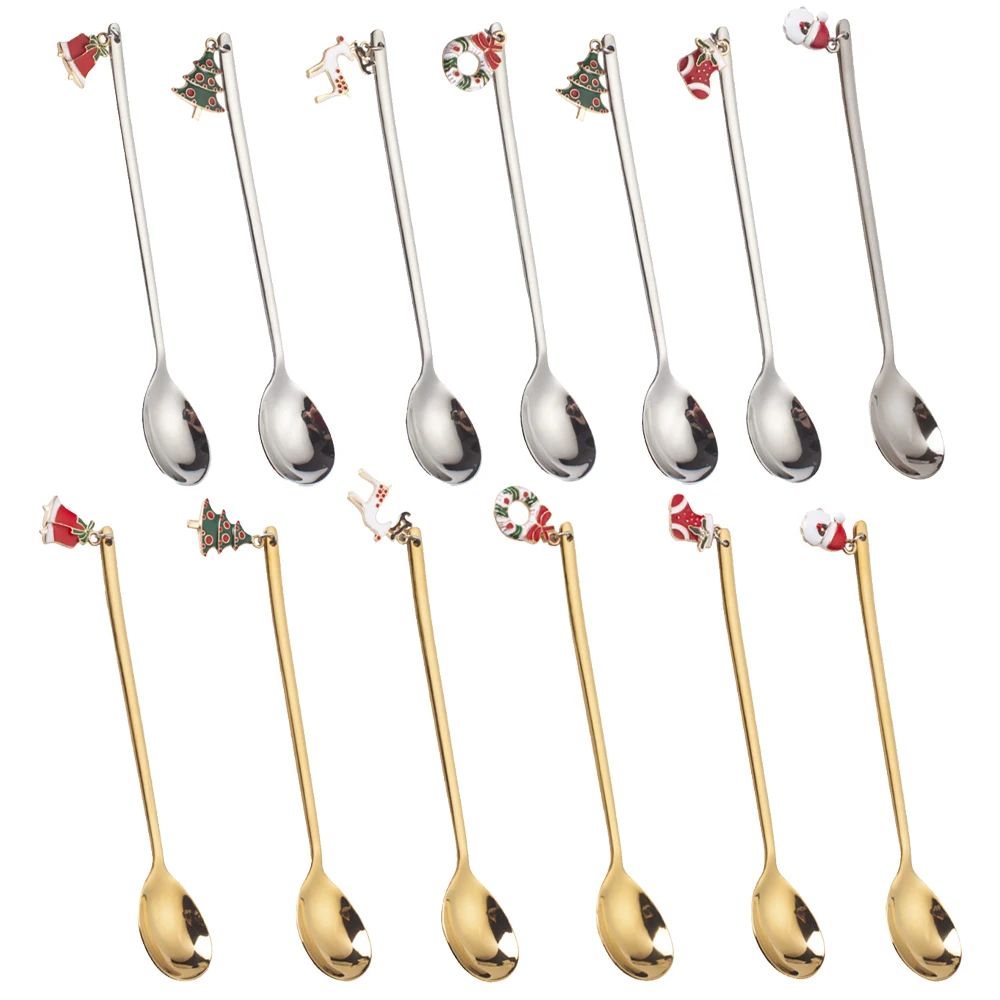 1 шт., Рождественская ложка из нержавеющей стали, кофейная ложка, рождественские вечерние украшения, ложка с длинной ручкой, рождественский подарок