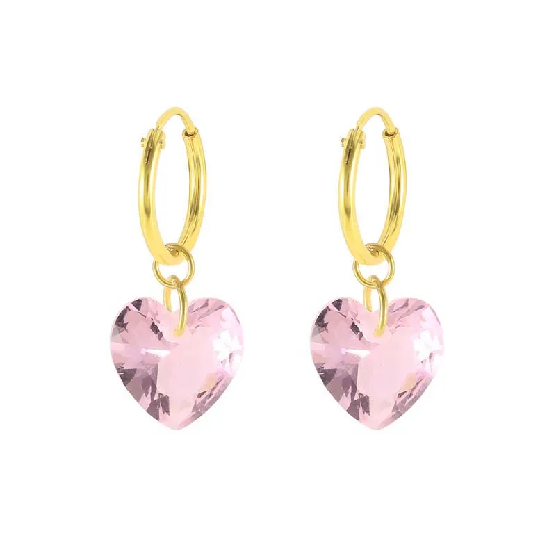 925 пробы серебро все розовые Кристальные серьги-кольца розовый кубический цирконий камень сердце Шарм с Луной и звездой серьги ювелирные изделия