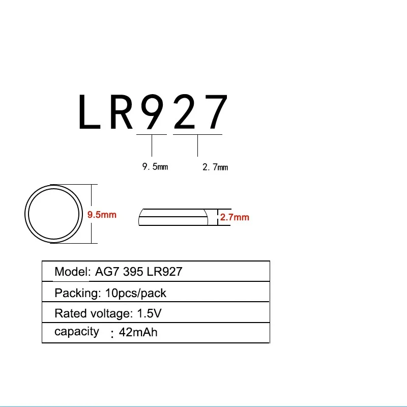 AG7 10 шт. 42 мАч AG 7 кнопочные щелочные батареи 1,55 в GR927 395A для LR927 LR57 SR927W 399 часы электронная игрушка Удаленная батарея монета