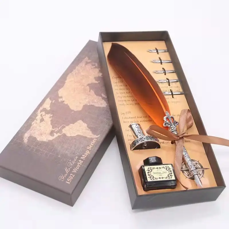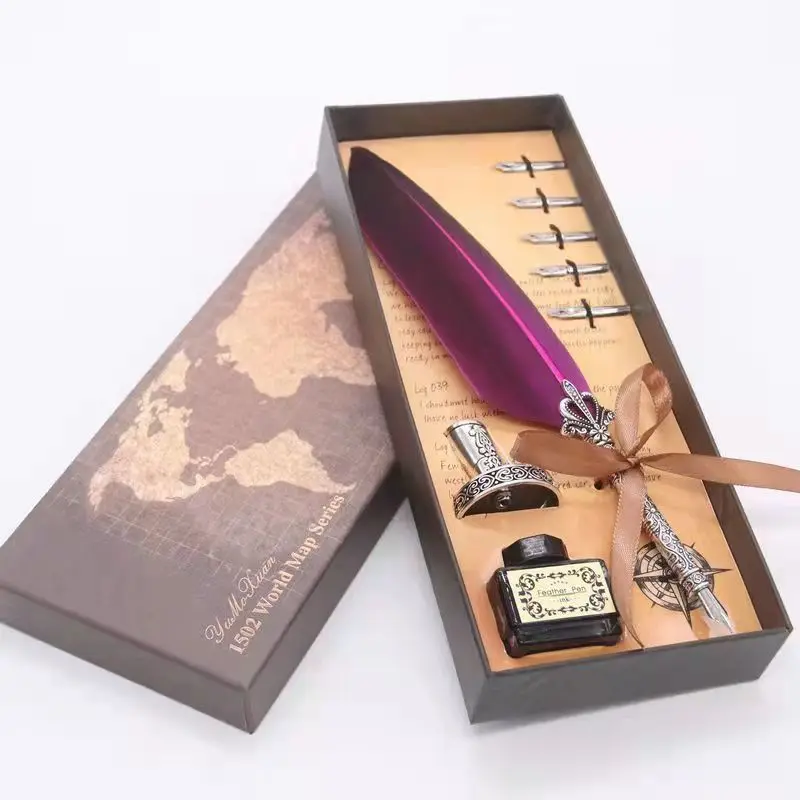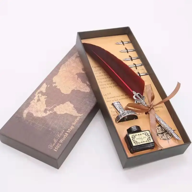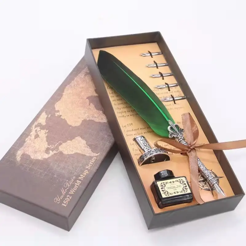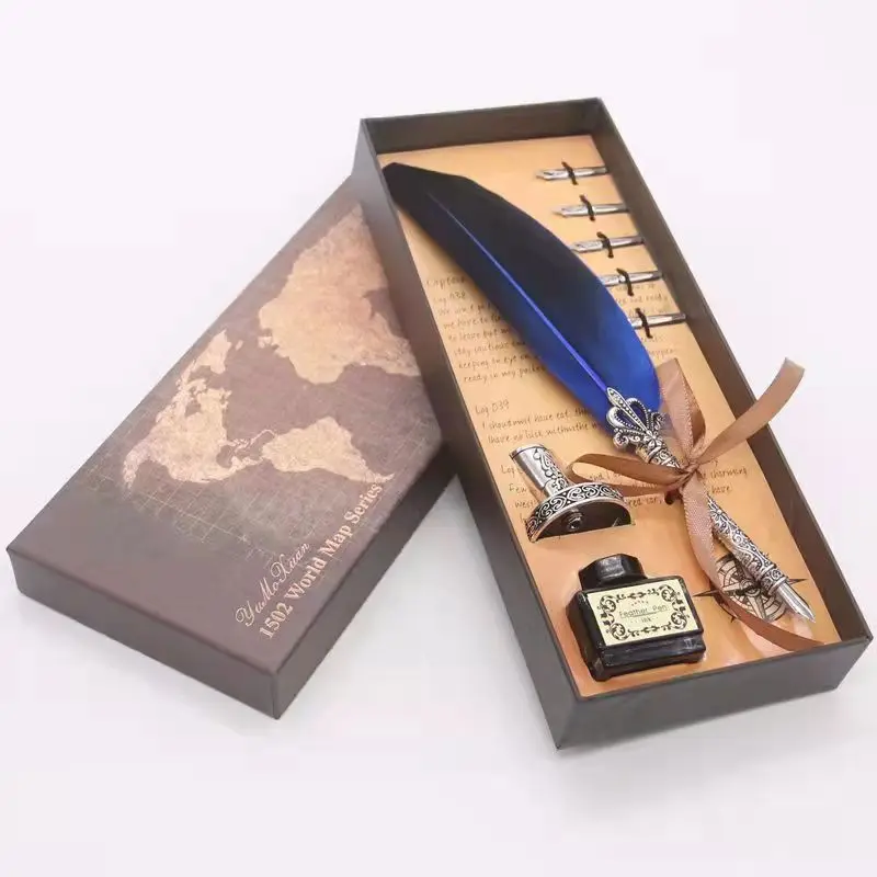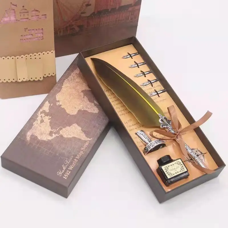 перьевая ручкаНабор ручек в стиле ретро с золотыми перьями, каллиграфическая ручка в форме бутылки с чернилами, Подарочная коробка для письма, перьевая ручка с 5 наконечниками в подарок на день рождения