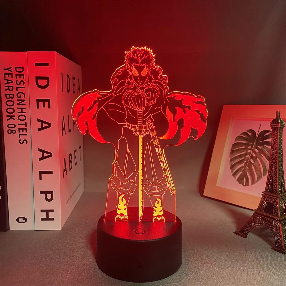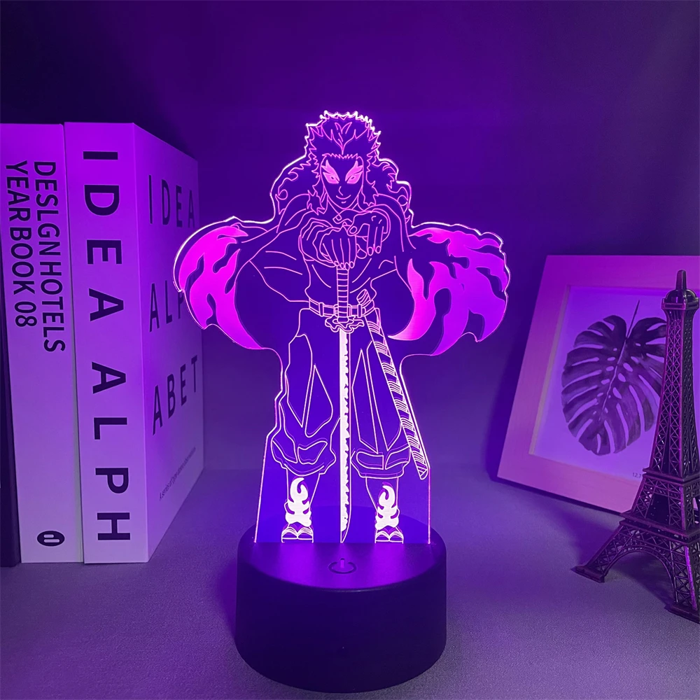Аниме, рассекающий демонов, Kimetsu No Yaiba kyoюрэ ренгоку, светодиодная лампа для украшения комнаты, настольная лампа, прикроватная светодиодная Ночная лампа Манга