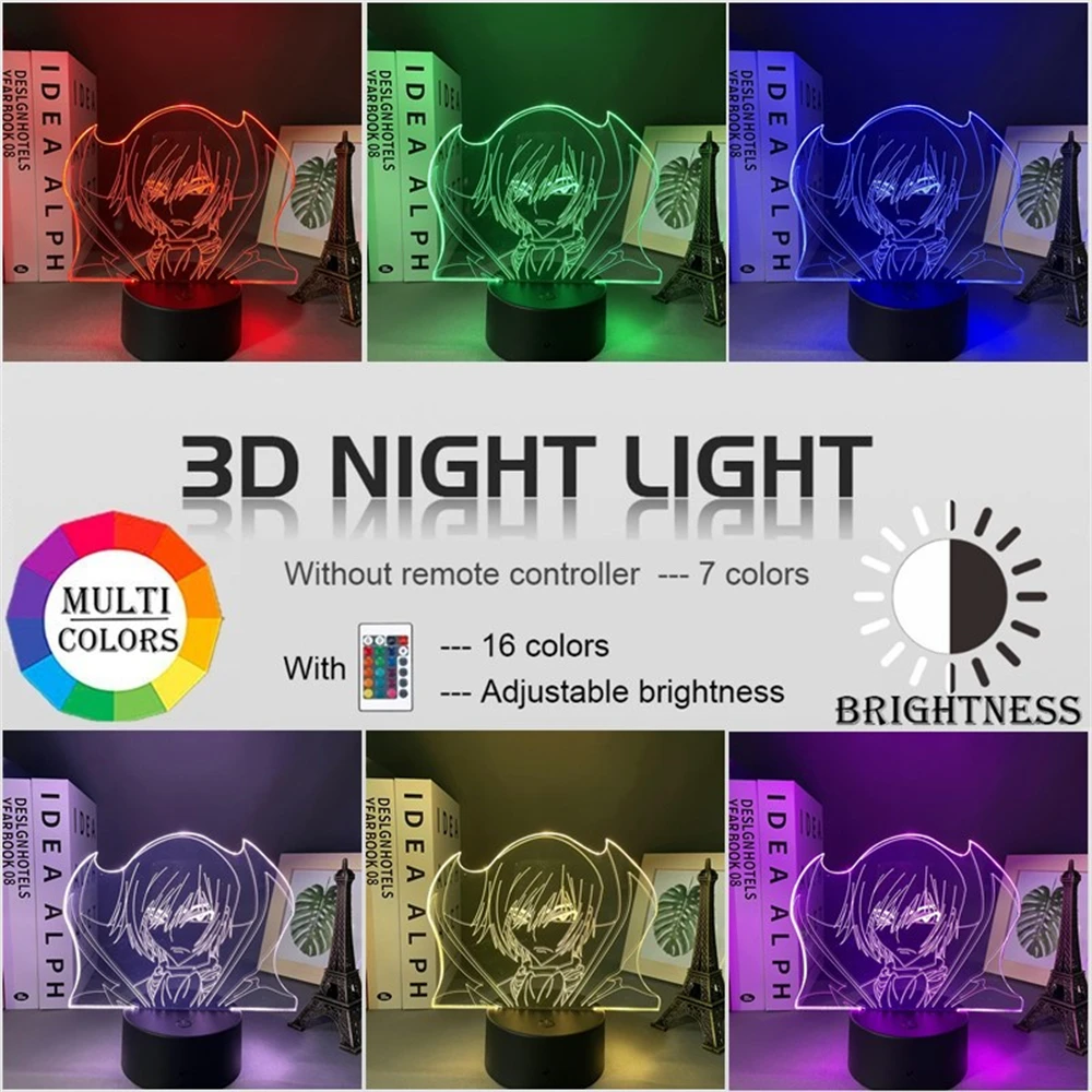 Аниме 3d лампа с кодом Geass Lelouch Lamperouge для спальни декор д...