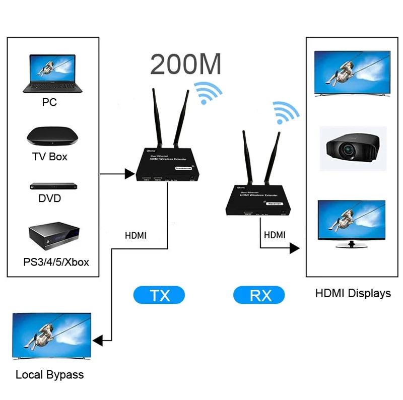 2. Передатчик поддерживает локальную петлю HDMI, чтобы облегчить мониторинг источника видео.