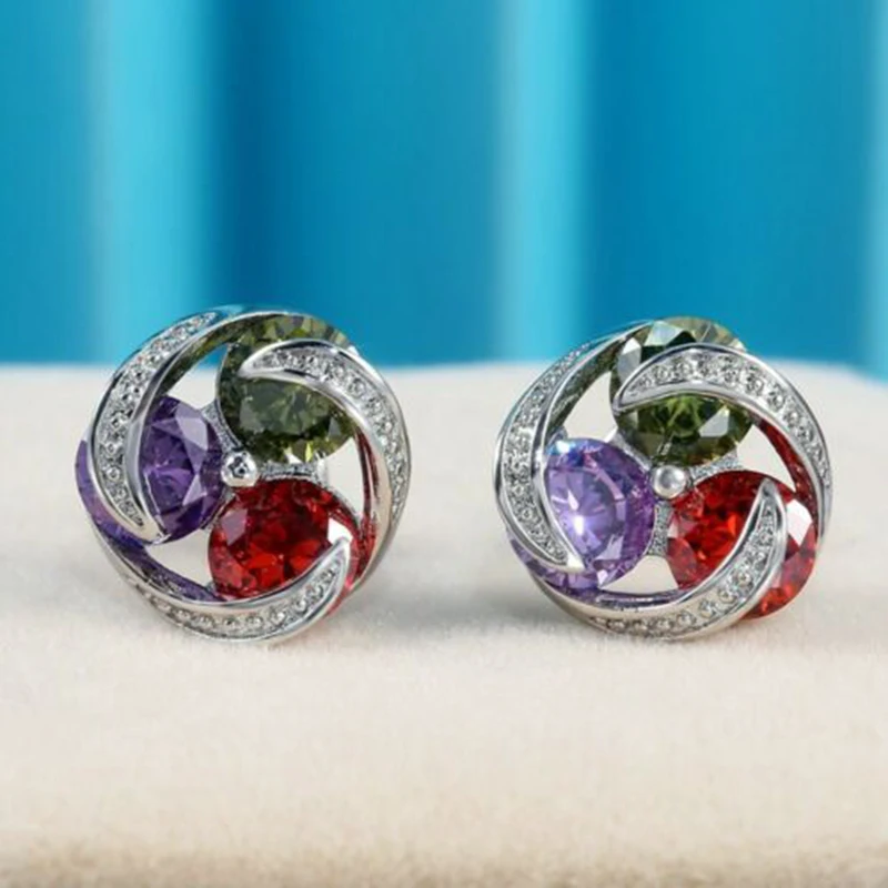 Корейские простые серьги-гвоздики с розовыми, желтыми и белыми кристаллами для женщин, милые ювелирные украшения для помолвки и свадьбы
