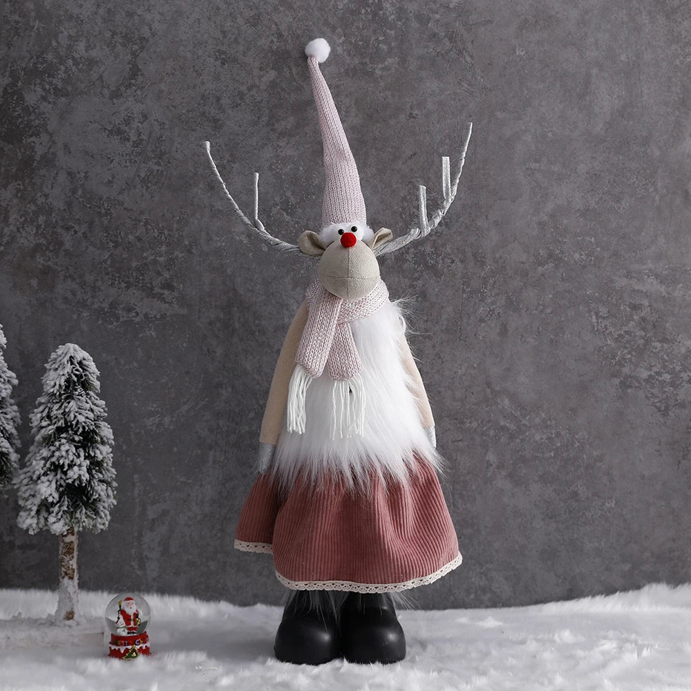 Розовая стоячая кукла Лось со светодиодной подсветкой, детская Рождественская Кукла лось, олень, рождественские украшения, рождественское и Новогоднее украшение для дома