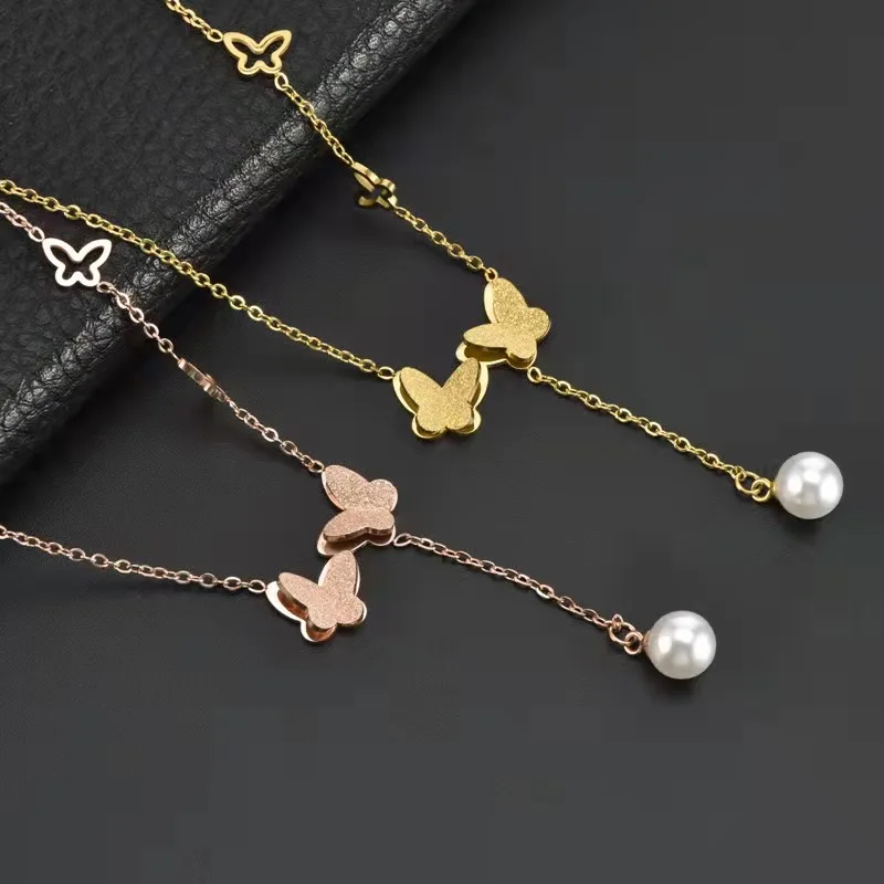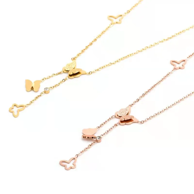 Высокое качество, женская двойная бабочка, матовая подвеска, ожерелье, ювелирные изделия для девочек