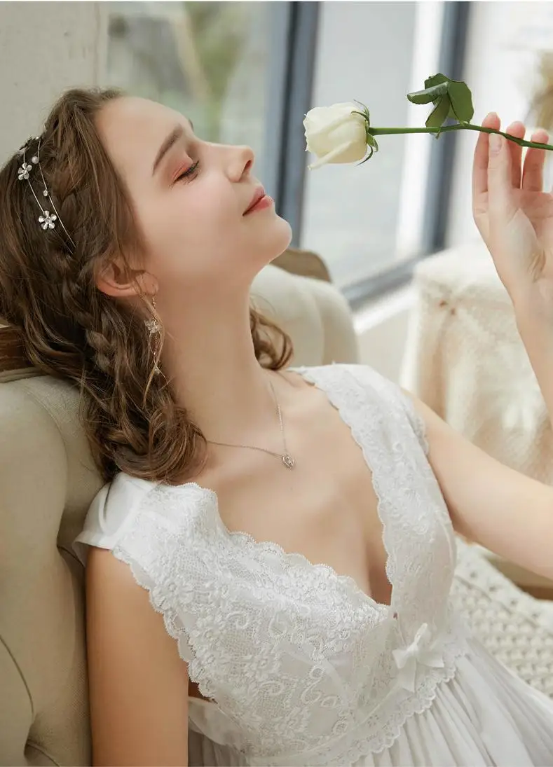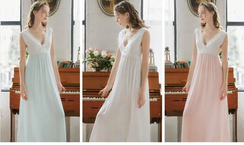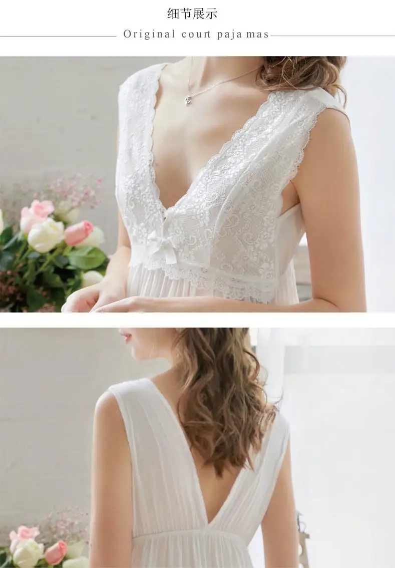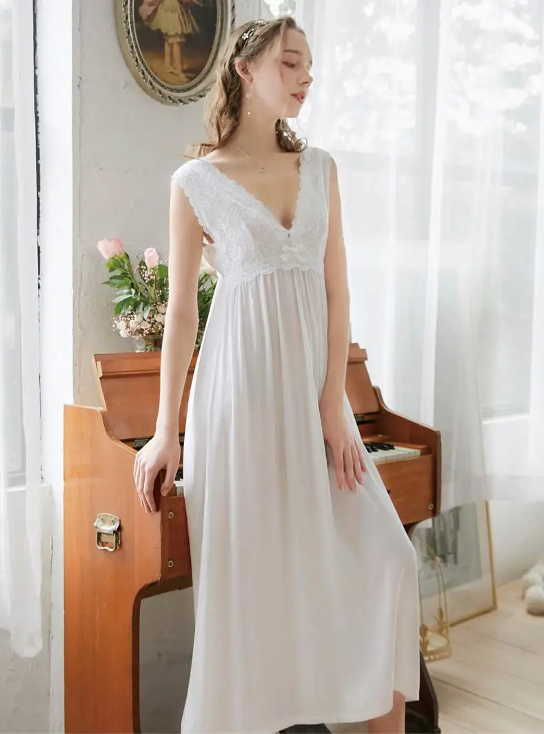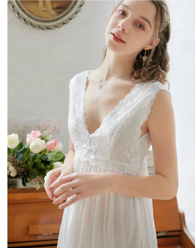 Женская винтажная ночная рубашка, летняя длинная кружевная ночная р...