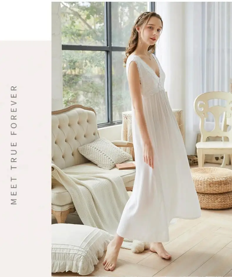 2021 летняя одежда для сна, в винтажном стиле, белая хлопковая ночн...