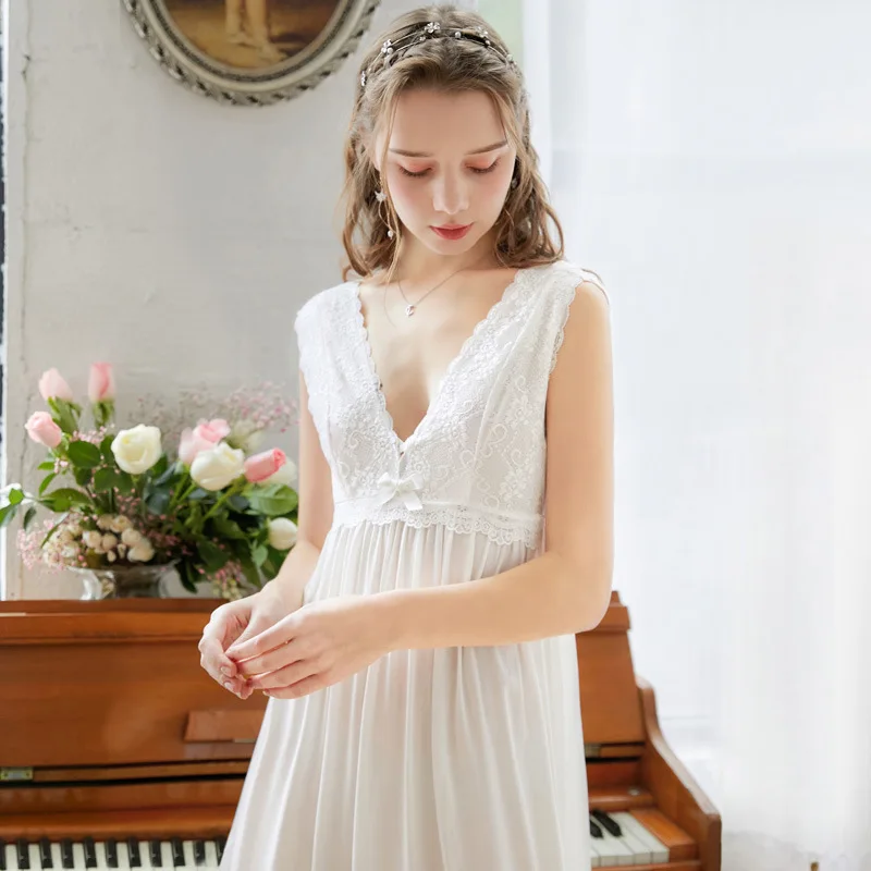 Летняя винтажная ночная рубашка, женские ночные рубашки без рукавов...