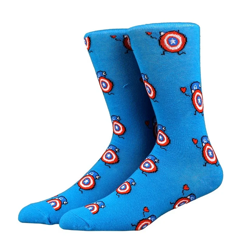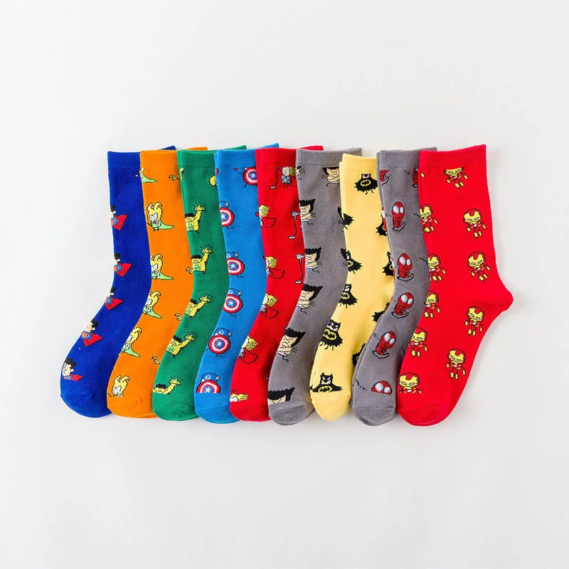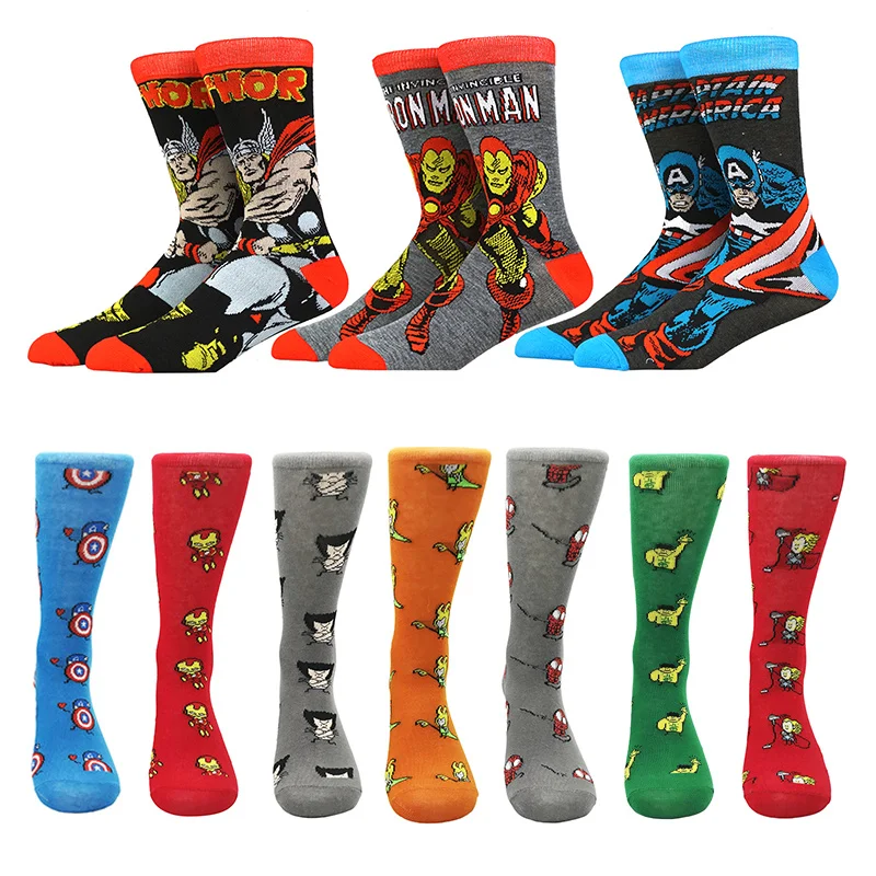 Носки из хлопка в стиле аниме Marvel, Носки с рисунком Человека-паука, Железного человека, капитана мультфильма, забавные новые удобные модные повседневные спортивные носки