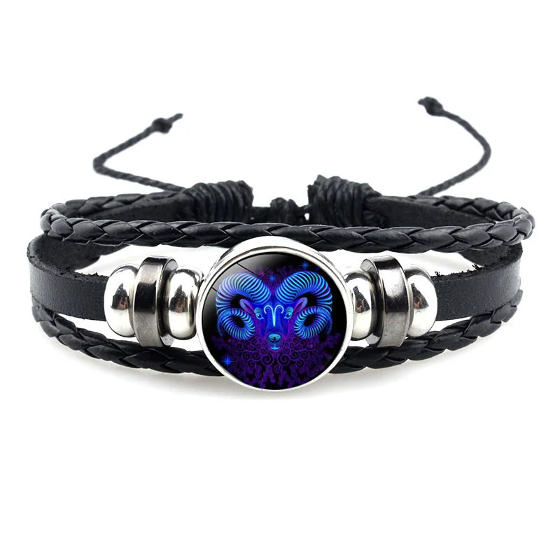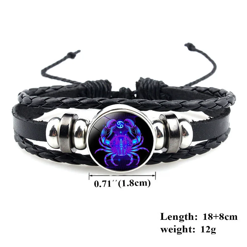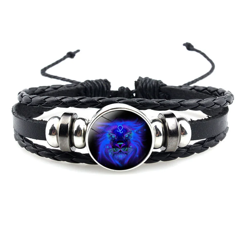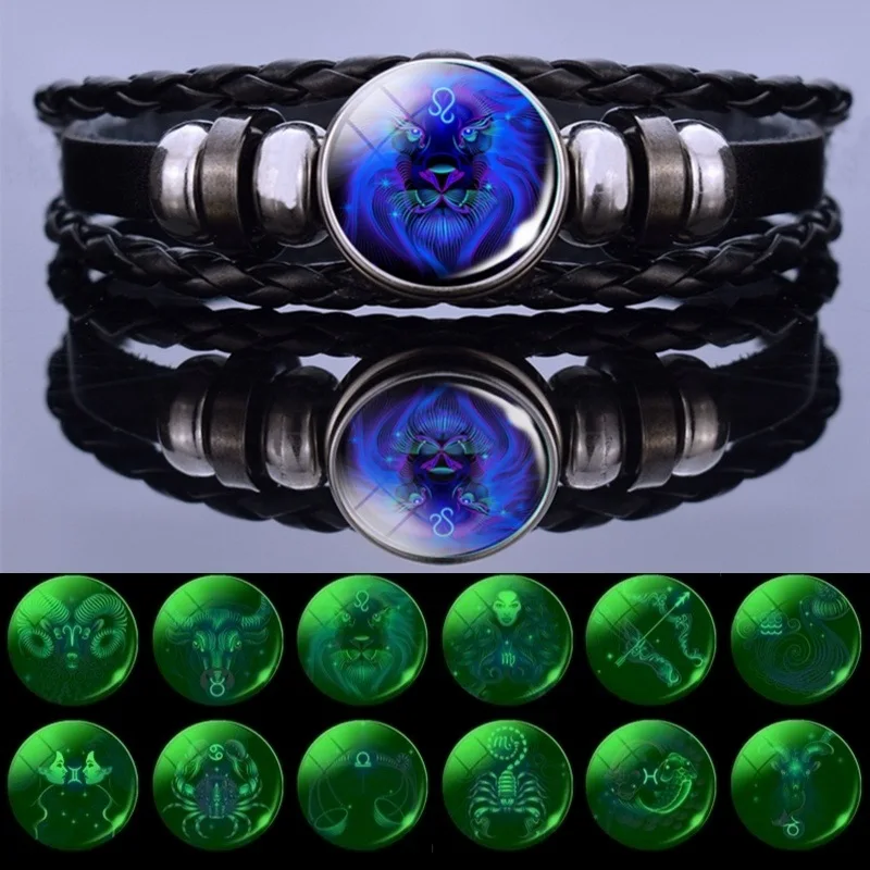 Светящийся Шарм-браслет со знаком созвездий, 12 звезд, мужской модный многослойный Плетеный Кожаный Браслет, женская бижутерия, подарки для пар