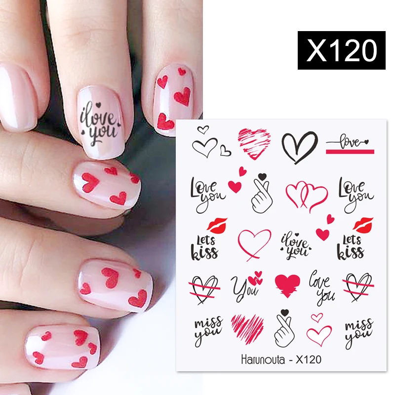 1 шт. переводные наклейки для ногтей Harunouta День Святого Валентина Сердце Красочные листья цветочный узор дизайн ногтей маникюр украшение