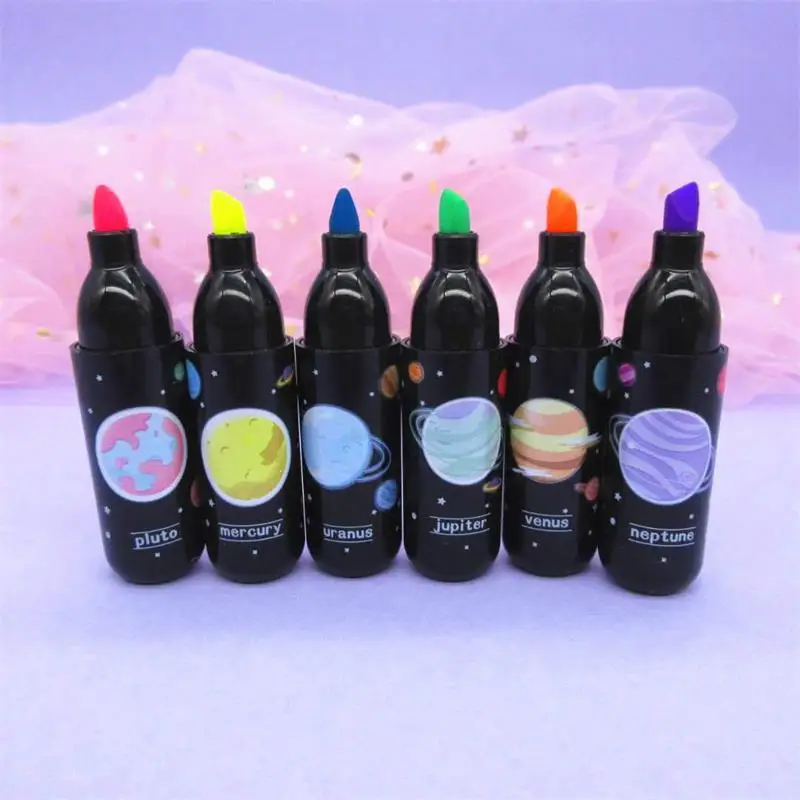 Маркер для винных бутылок с изображением милой планеты, фломастер, флуоресцентный маркер для рисования, принадлежности для школы и офиса 2021, 6 шт.