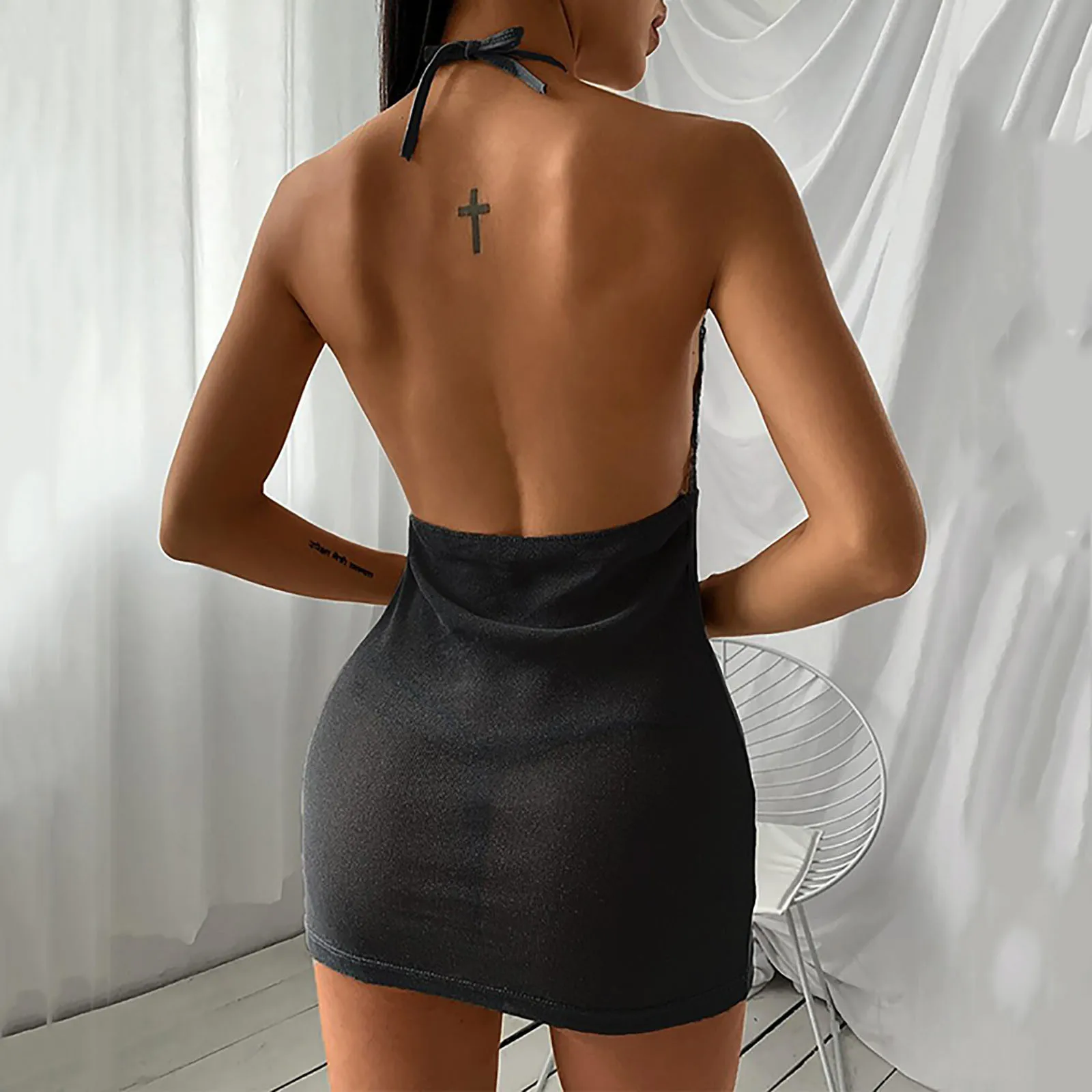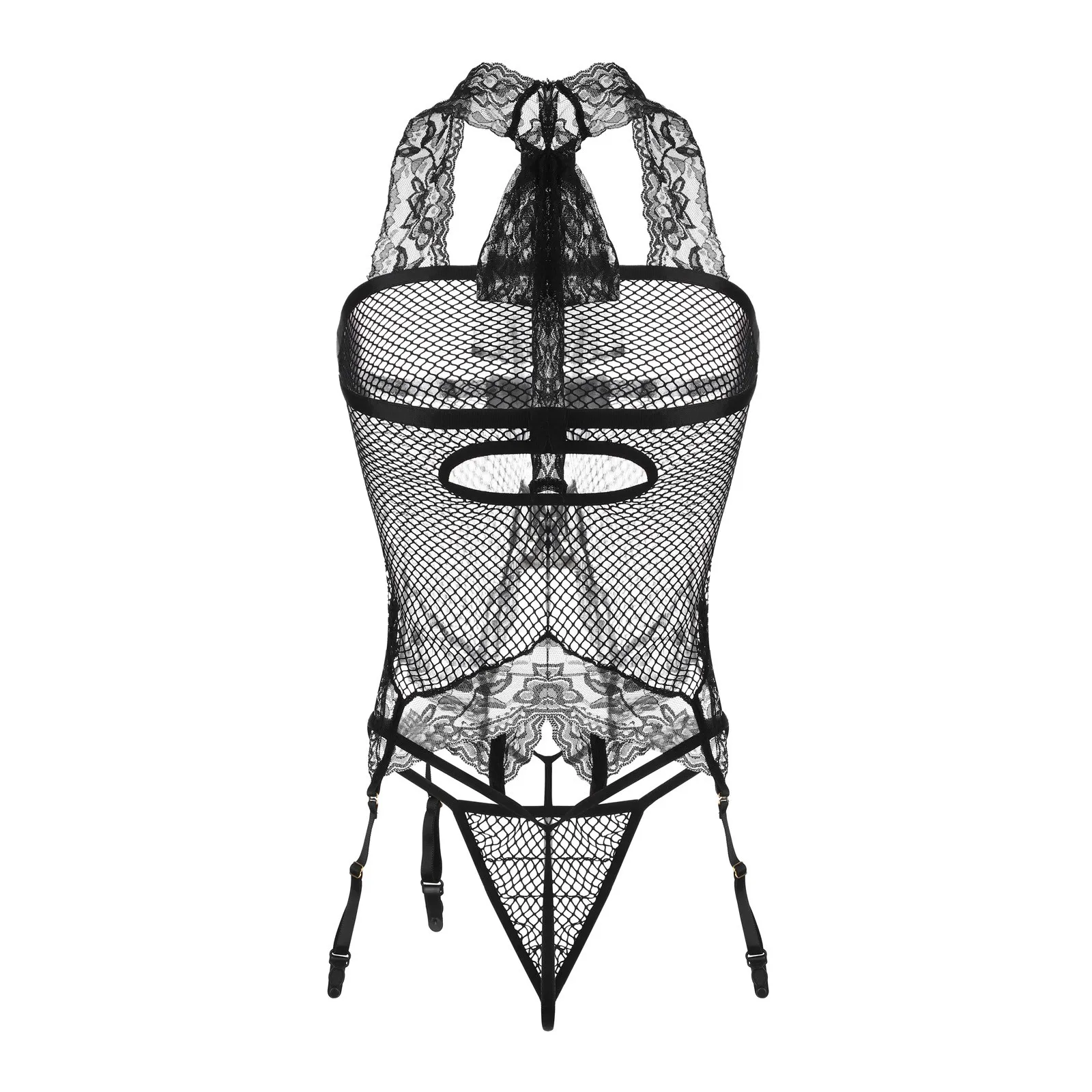 Женское сексуальное нижнее белье, сексуальное кружевное нижнее белье, открытый бюстгальтер с лямкой через шею, цельная юбка и стринги, соблазнительное нижнее белье, Экзотическая одежда