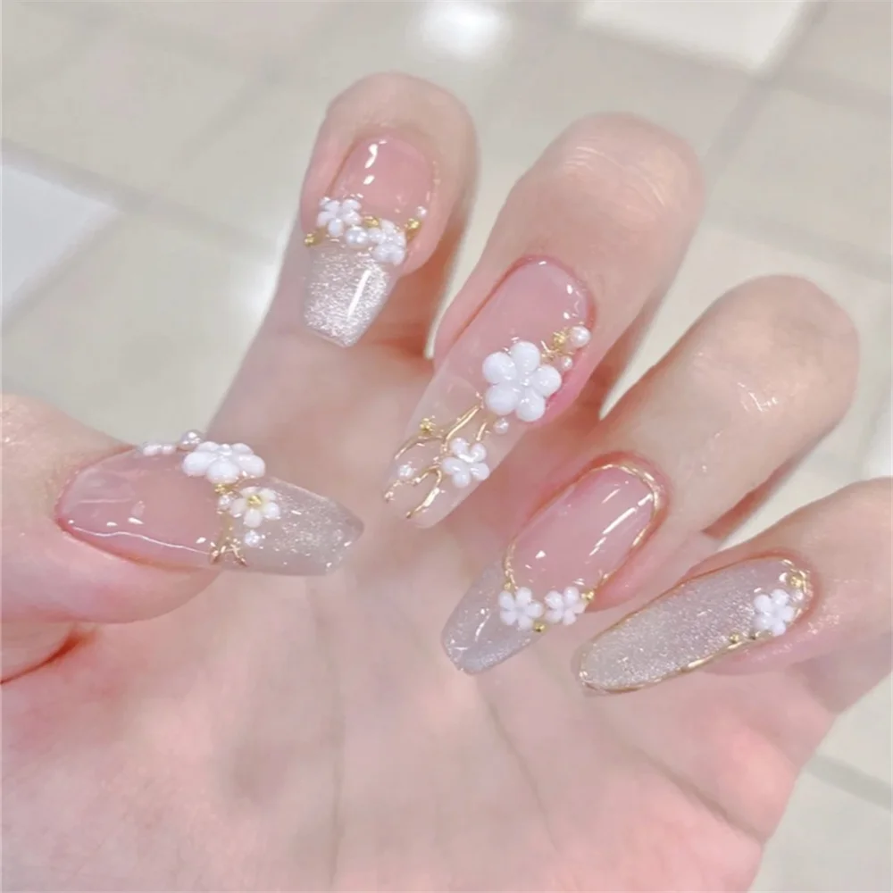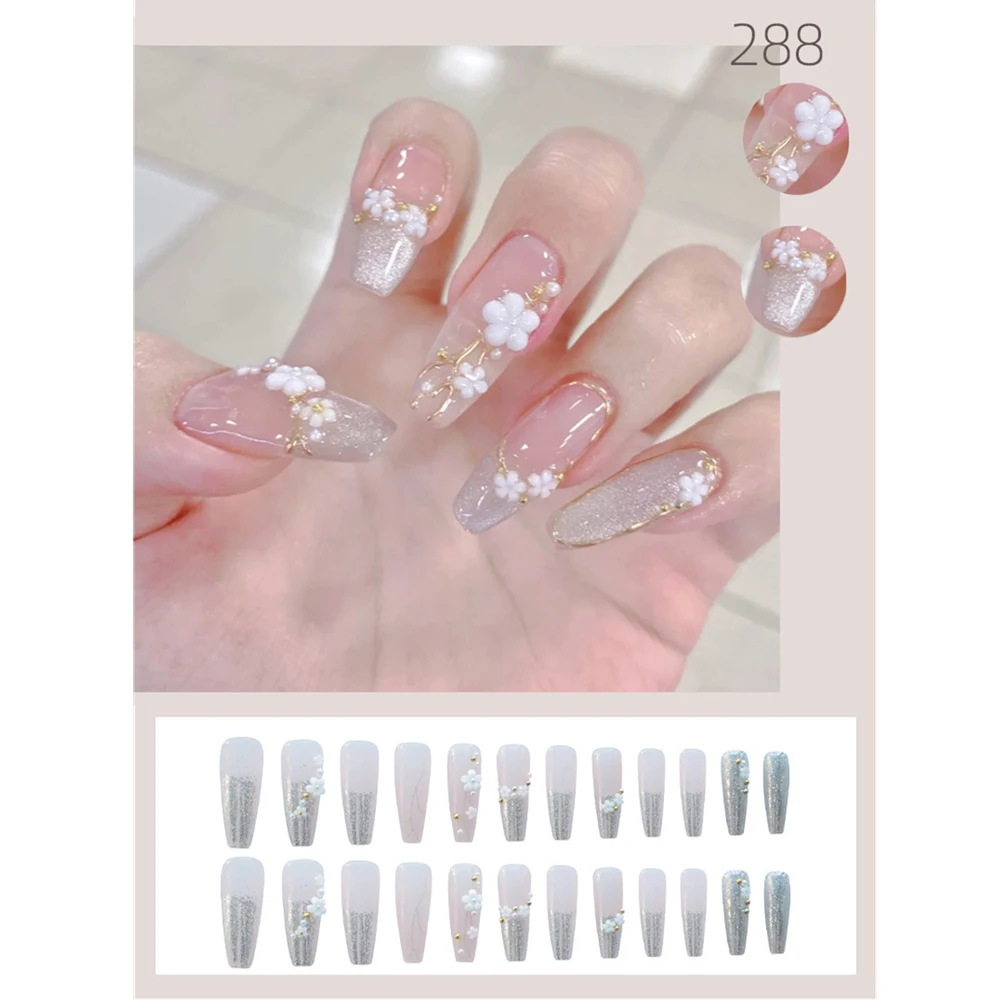 24 шт.коркор. накладные ногти в романтическом стиле с отстегивающим...