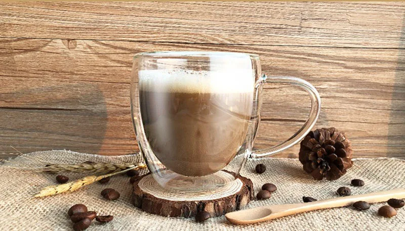 Стеклянная кружка с двойными стенками для чая, пива, молока