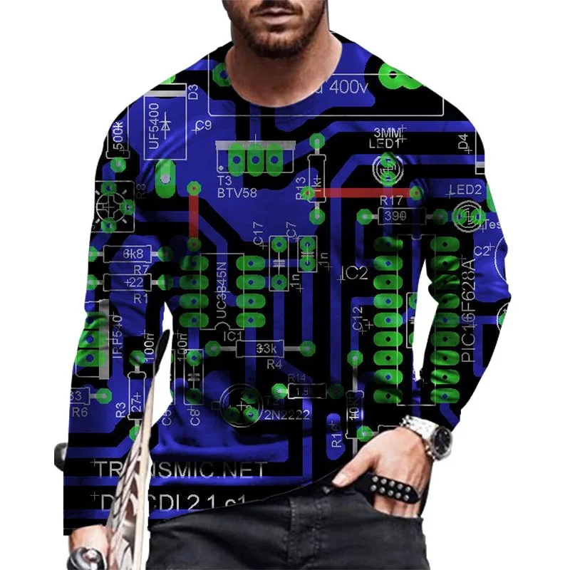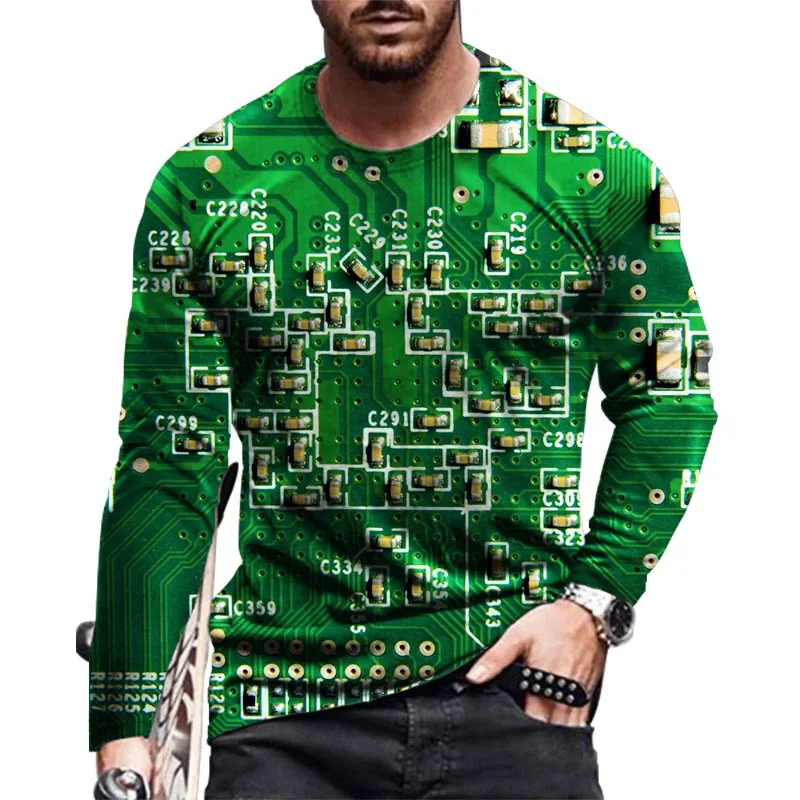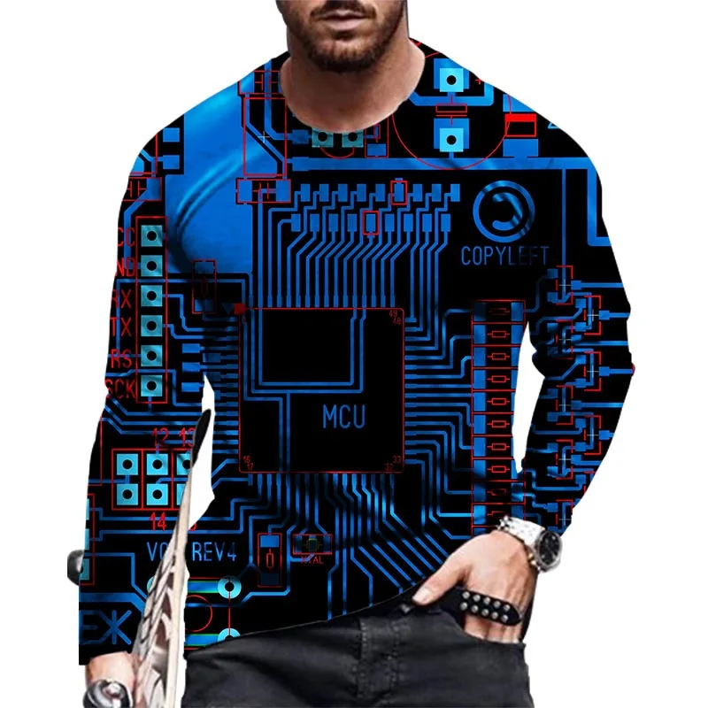 Европейская и американская популярная мужская Спортивная футболка для отдыха с 3D Цифровым принтом уличная трендовая футболка с 3D принтом и длинным рукавом