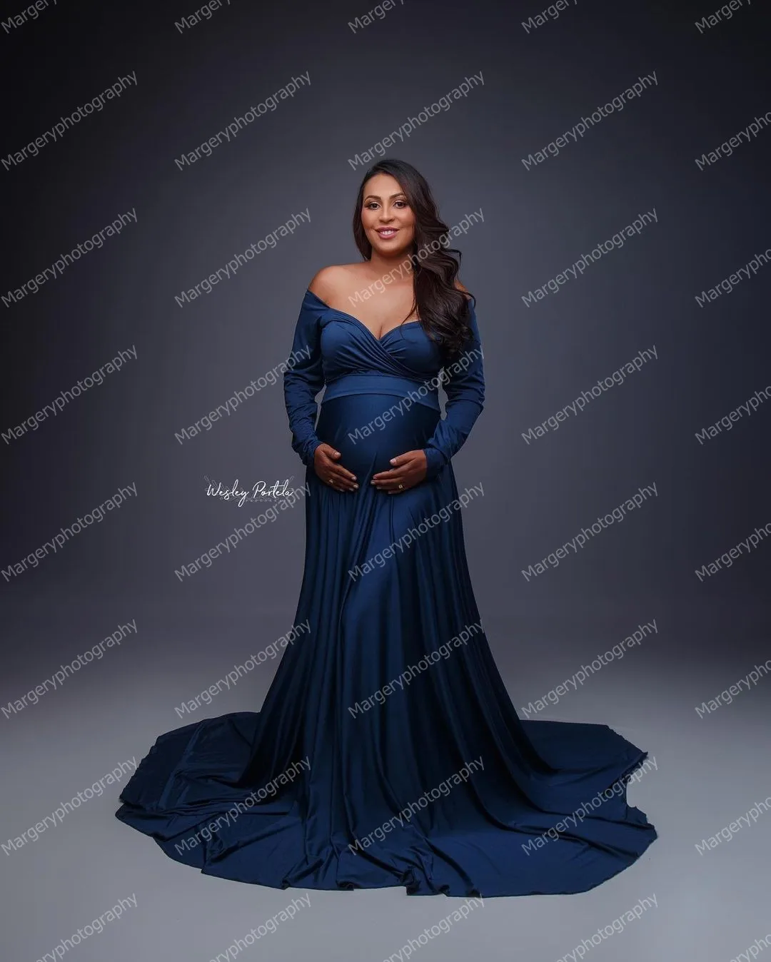 Элегантное платье для беременных с длинным рукавом трапециевидной формы длиной до пола темно-синие платья для беременных с V-образным вырезом для фотосъемки прегнание для женщин