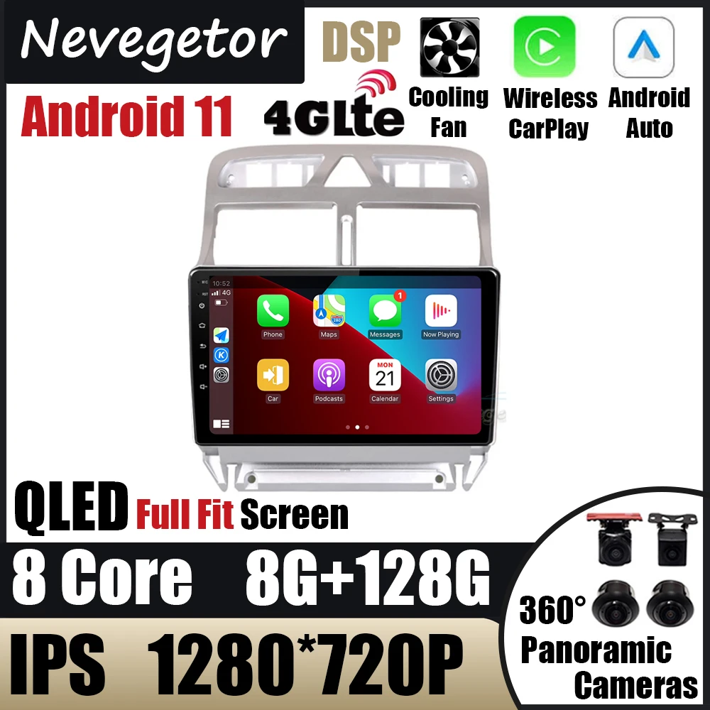 Автомобильный радиоприемник Android 11, навигационный плеер для Peugeot 307 307CC 307SW 2004-2013, мультимедийный стереопроигрыватель с Wi-Fi и видео, 2 DIN, Авторадио