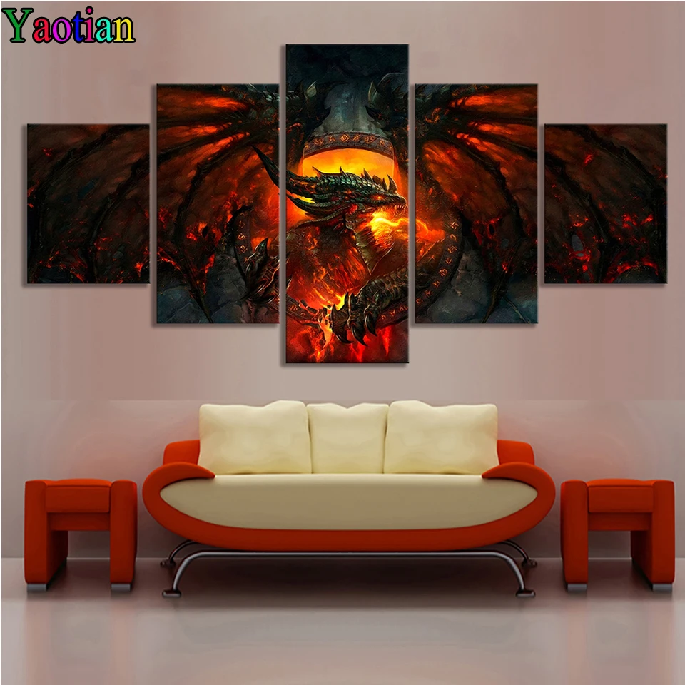 Абстрактное пламя дракон DIY алмазная живопись полный квадрат/Круглая Мозаика животное Алмазная вышивка домашний декор Прямая поставка 5 шт