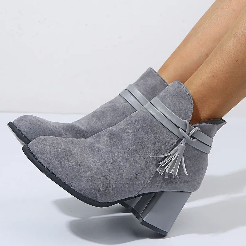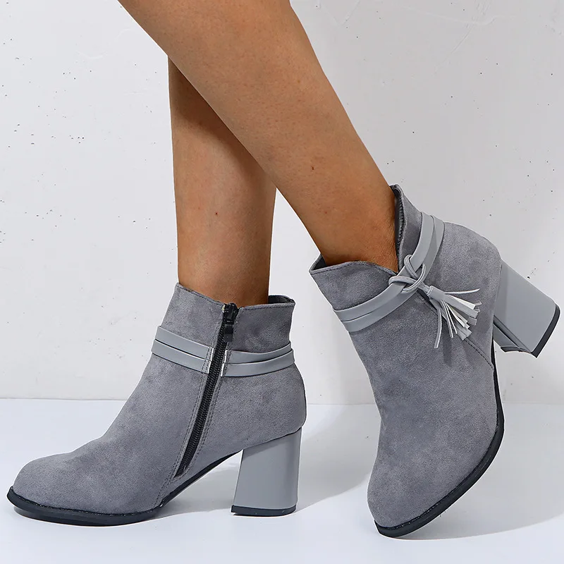 Женские замшевые ботинки с круглым носком, на высоком каблуке