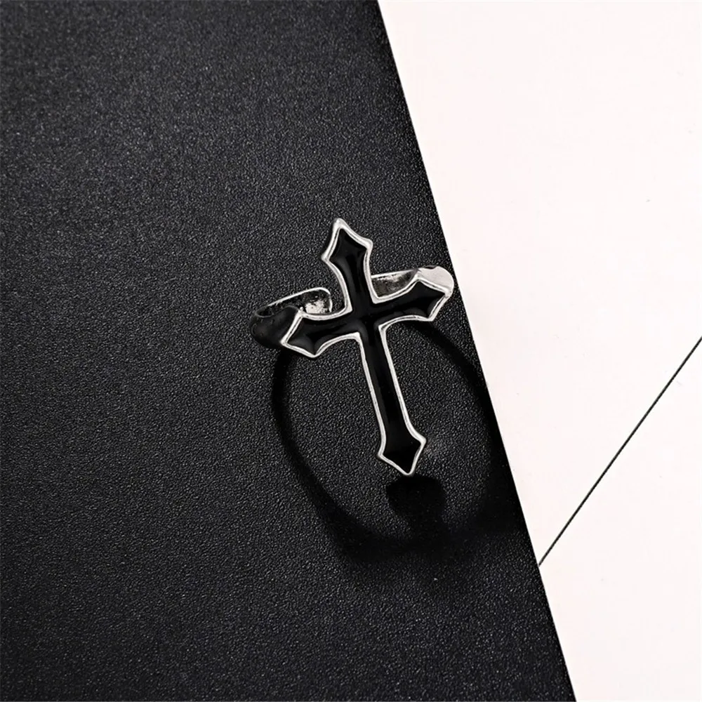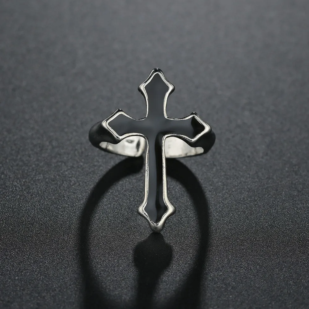 Винтажные черные большие открытые кольца с крестом для женщин и мужчин, ювелирные изделия для вечеринок, модное готическое металлическое кольцо на палец, подарки на Хэллоуин, кольца