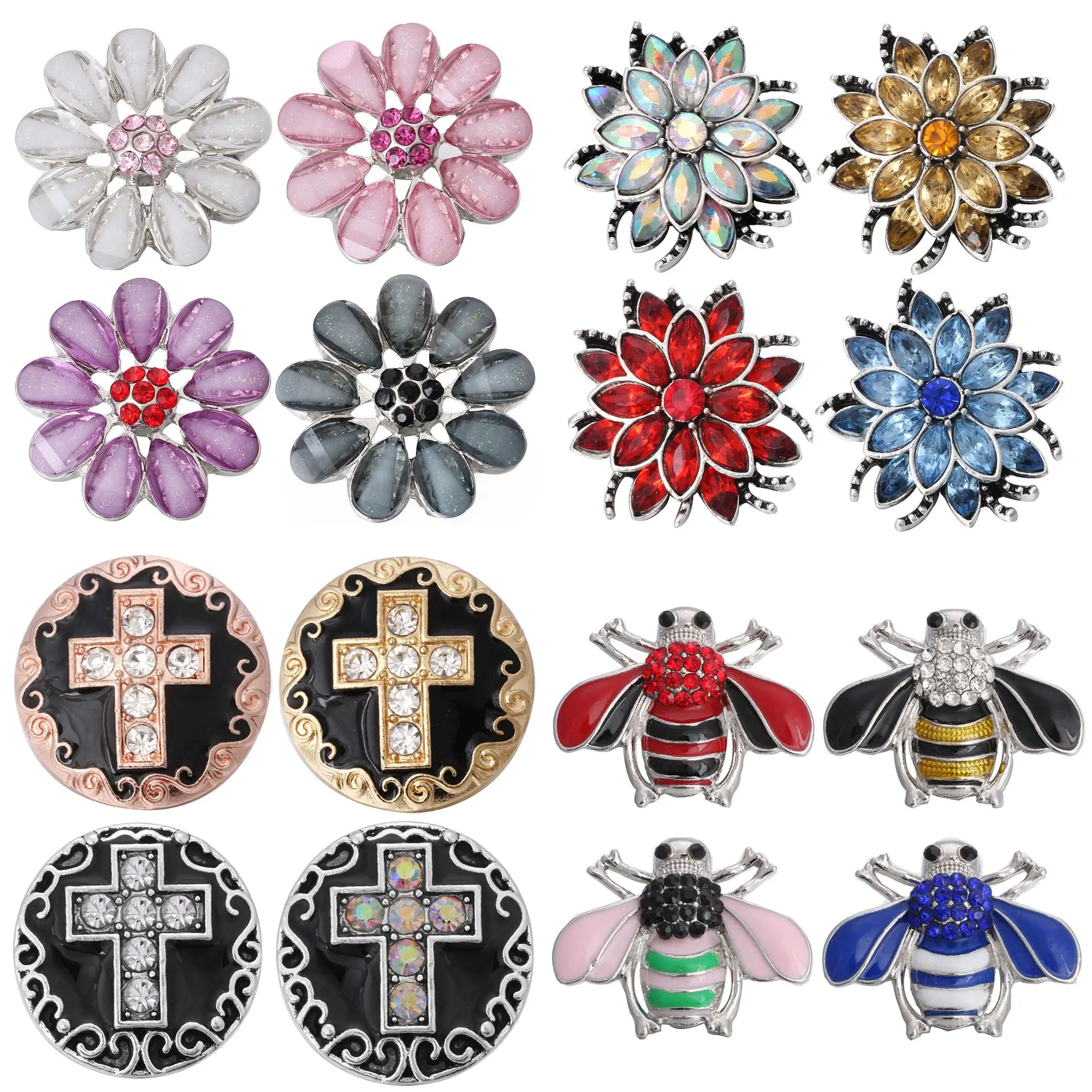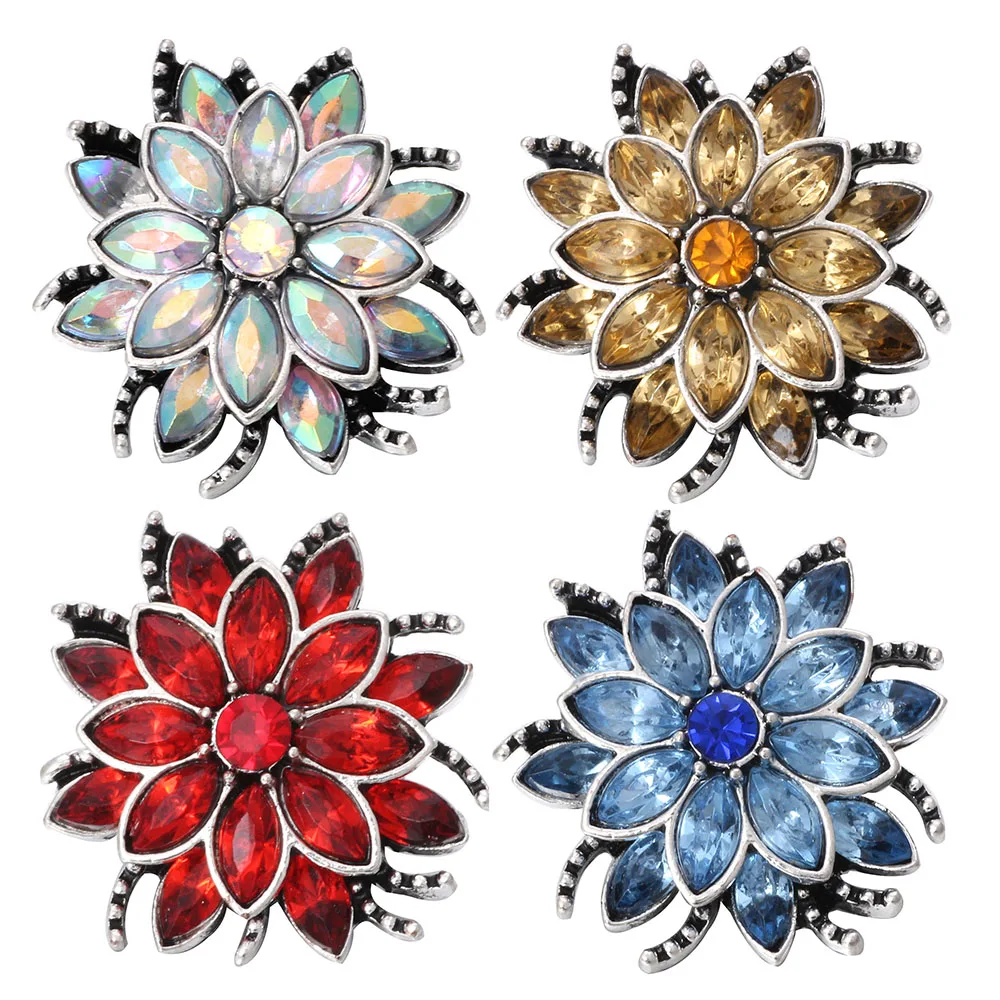5 шт.лот Горячая Застежка Ювелирные изделия смешанный цветок горный хрусталь Металлические 18 мм 20 мм кнопки ювелирные изделия для застежки браслета DIY шармы