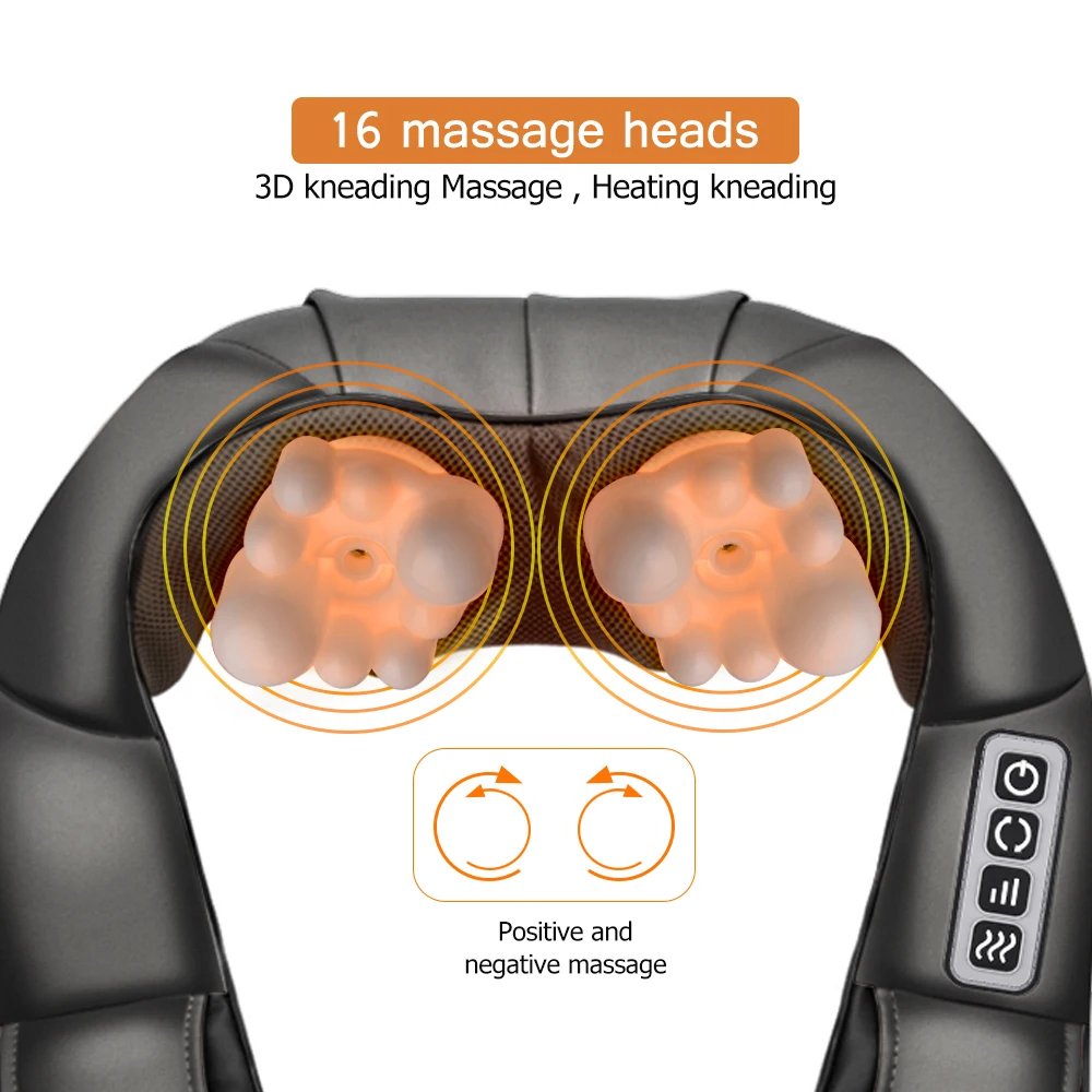 Шиацу u-образный шейный массажер для плеч 16 головок