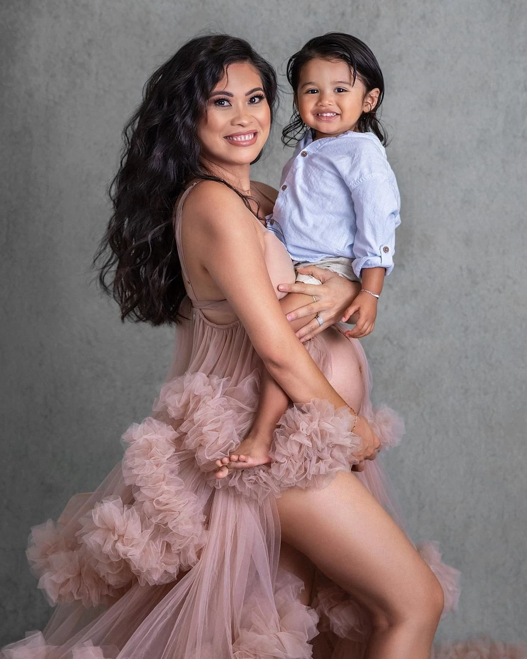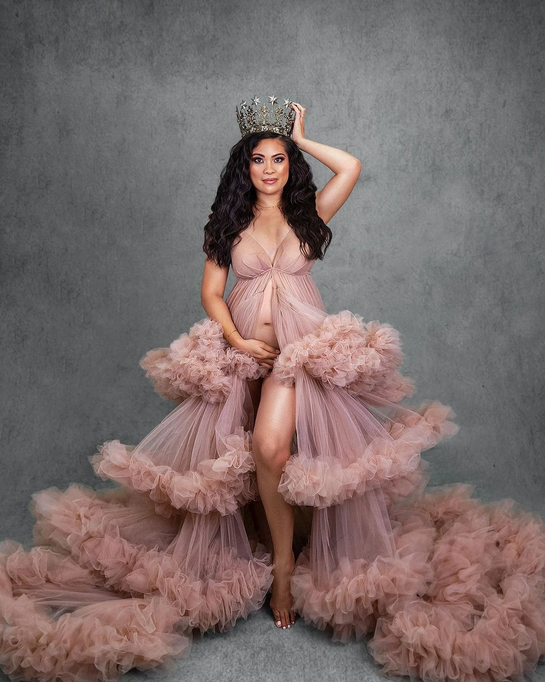 Высококачественный красивый тюлевый халат для беременных для фотосъ...