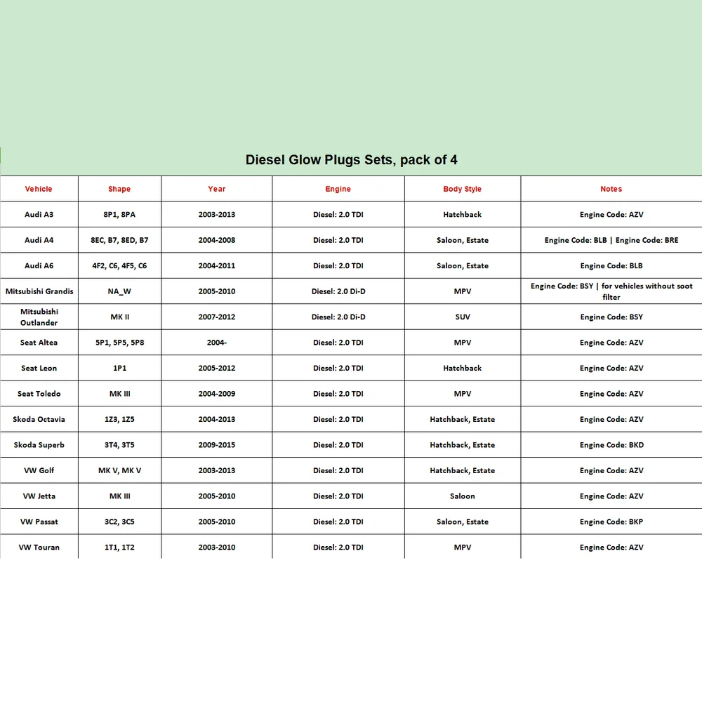 4 шт. свечи для дизельного нагревателя, автомобильная свеча, иридиевая Свеча зажигания, подходит для Audi Mitsubishi Seat Skoda VW 2,0 Di-D TDI #1