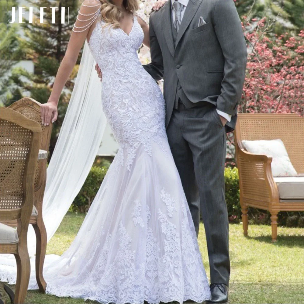 Женское свадебное платье с юбкой-годе JEHETH, винтажное кружевное платье из тюля с аппликацией и V-образным вырезом, платье невесты на бретелях, 2022