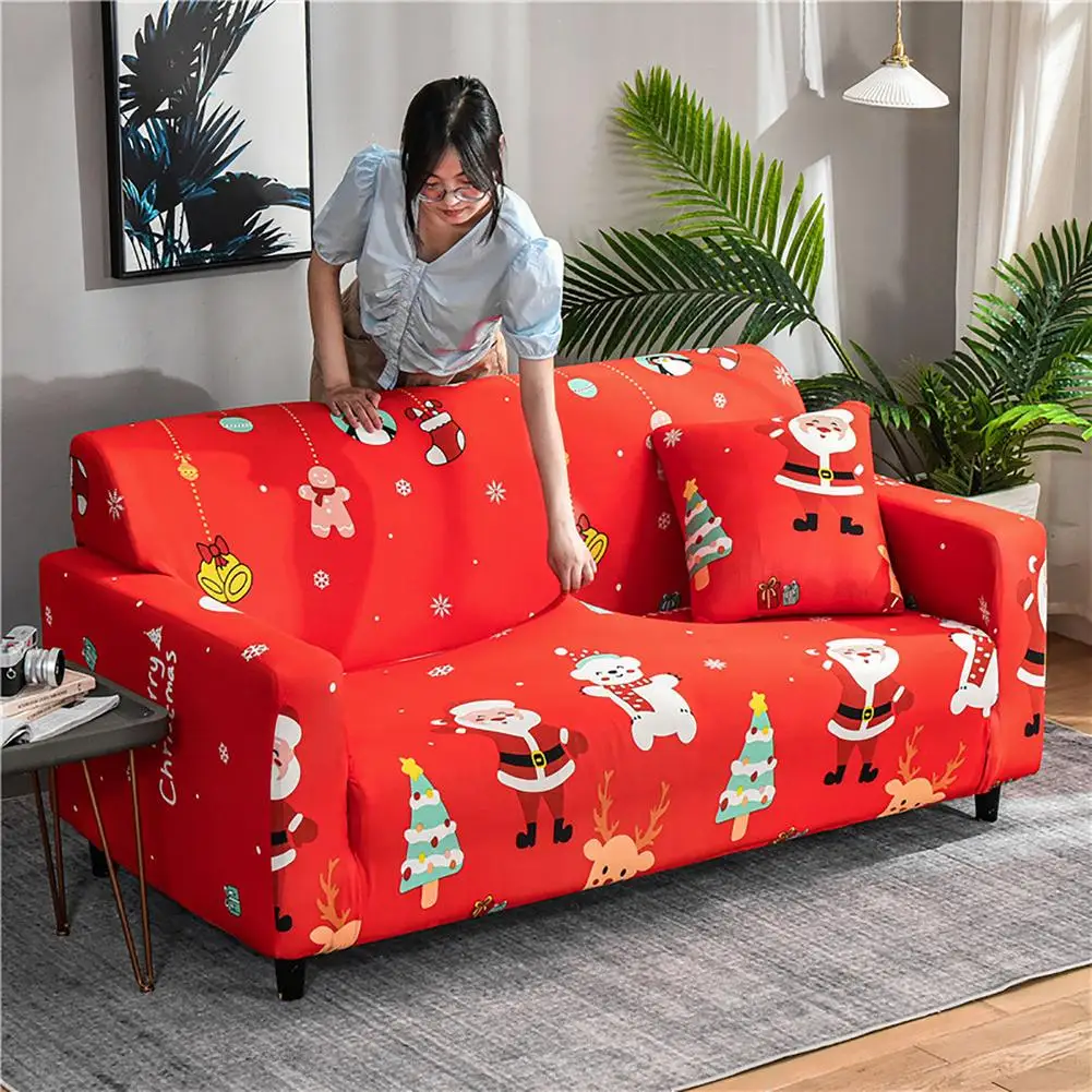 Чехол для дивана с рождественским принтом, Красный высокоэластичный Прочный чехол для мебели, плотно закрытый эластичный чехол из спандекса