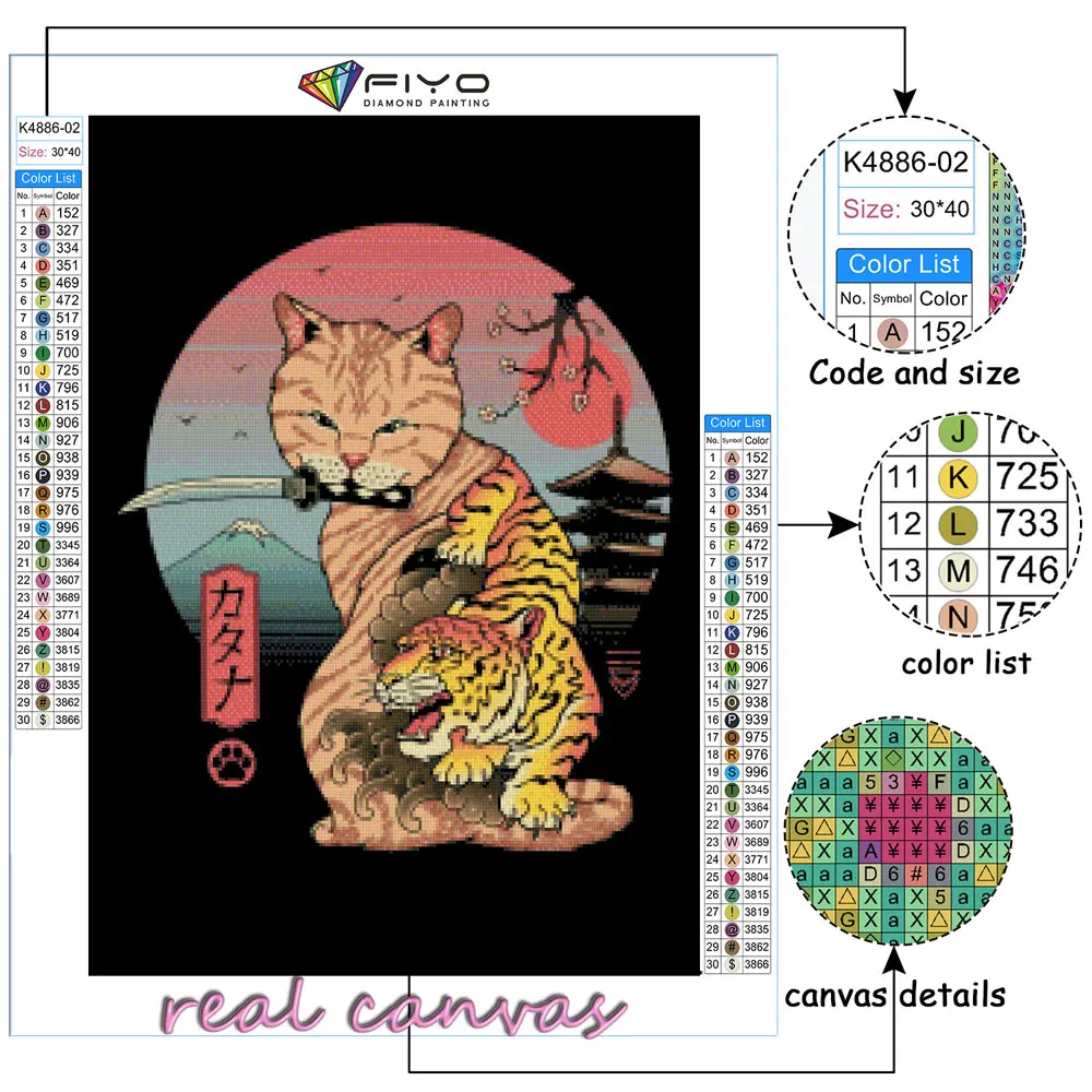 Алмазная вышивка FIYO с кошками, картина с квадратными стразами, ст...