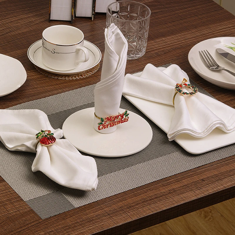 25 стилей Рождественская елка Санта Клаус снеговик лося колокольчик носок венок салфетка пряжка металлическая Свадьба отель стол рот украшение кольцо
